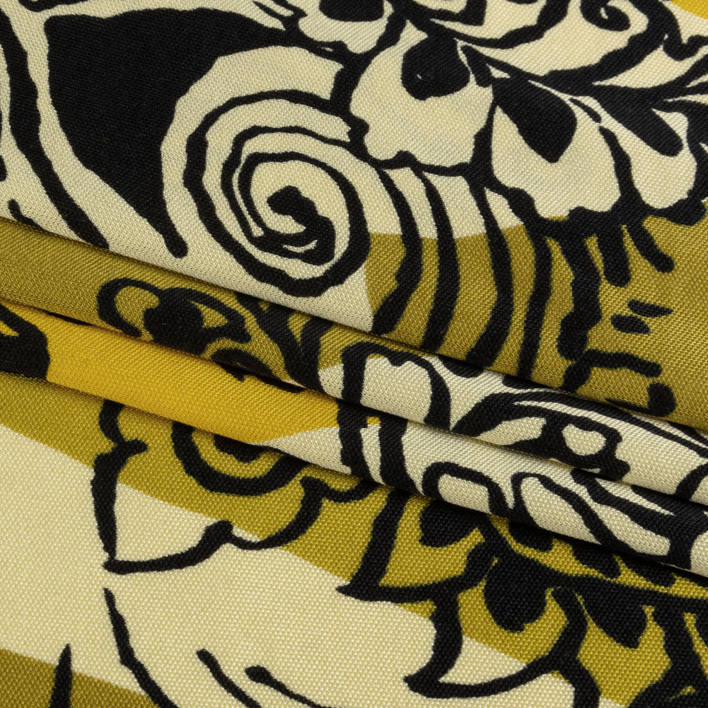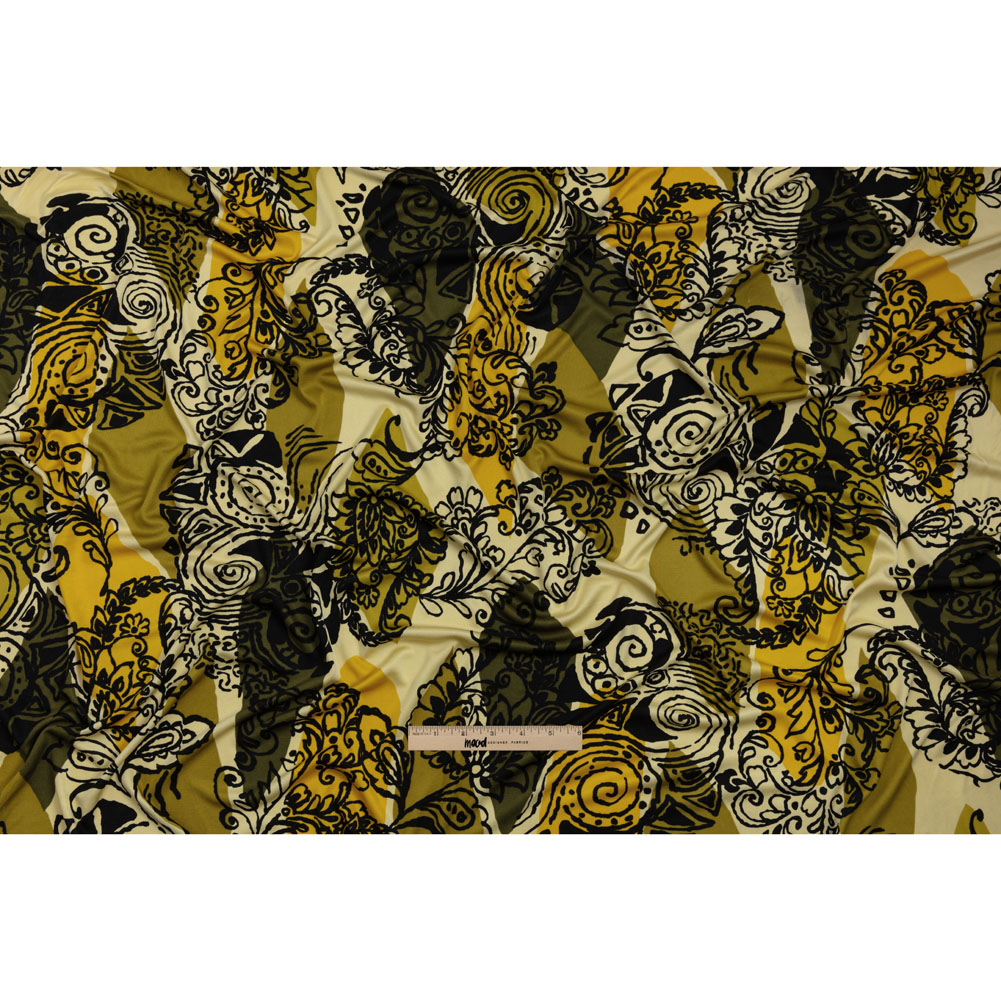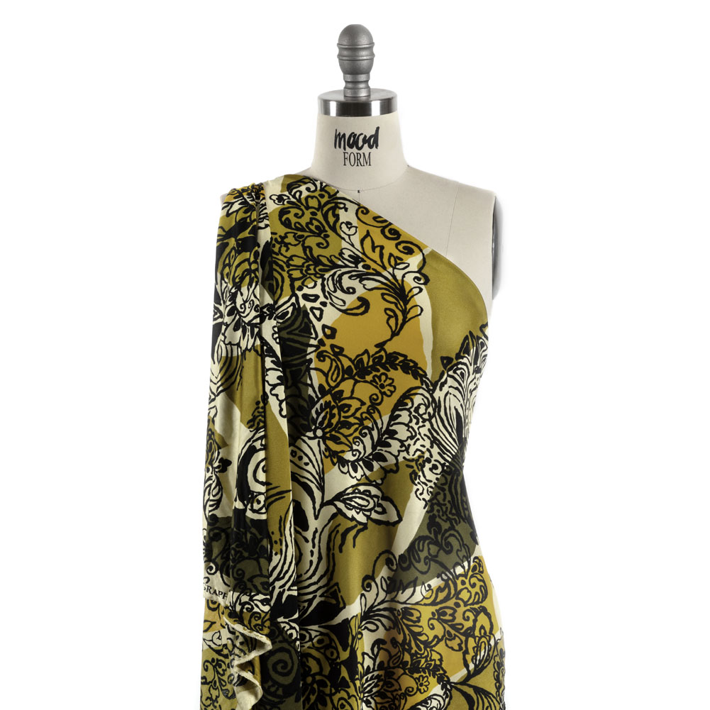 Olive, Goldenrod, and Kiwi Diamonds and Floral Outlines Silk Jersey