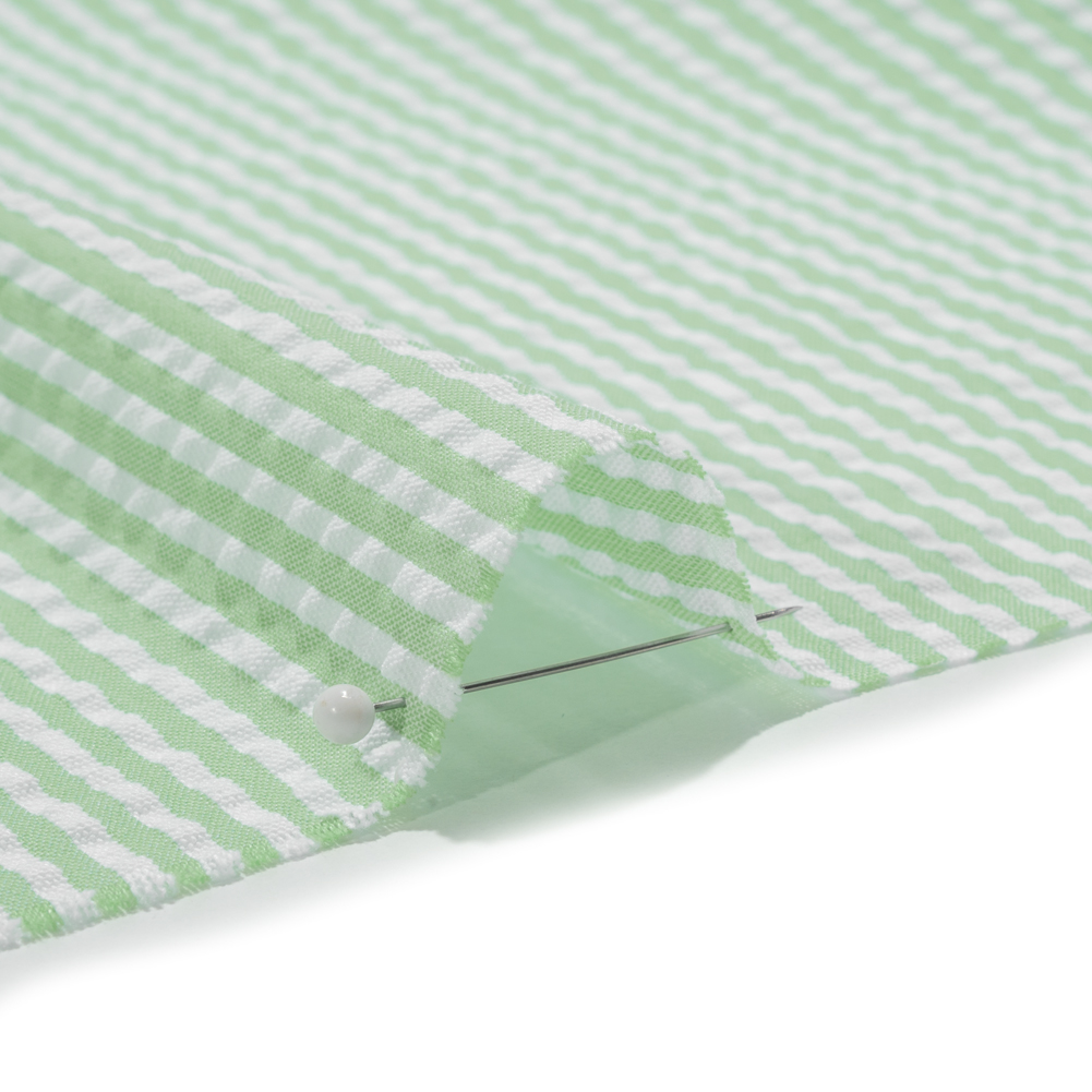 Polyester and Cotton Seersucker - Green and White Candy Stripes - Wylie Collection