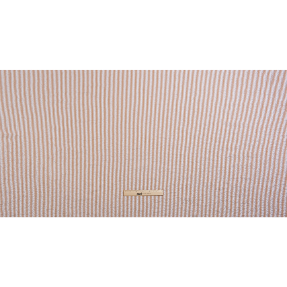 Polyester and Cotton Seersucker - Khaki and White Candy Stripes - Wylie Collection
