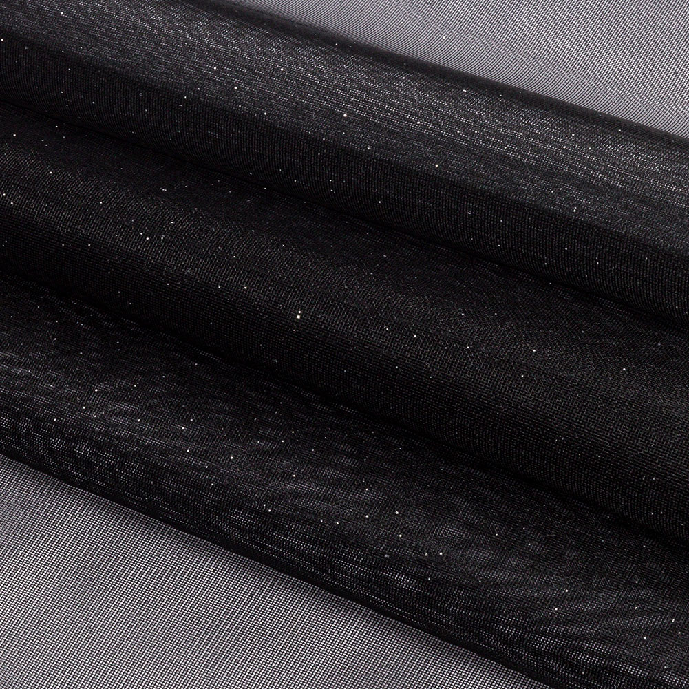 Polyester Mesh Organza with Silver Glitter - Black - Starlight Collection
