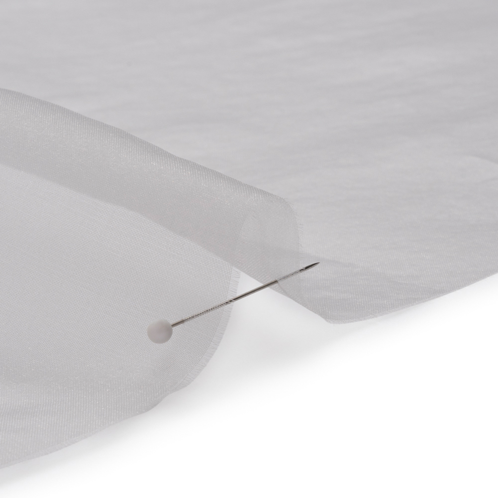 Dance among the stars with this Silver Polyester Organza! Ideal for inserts and overlays, it has a grainy hand, crisp drape, and sheer nature.Suggested Projects: Dresses, Skirts, Evening WearContent: 100% PolyesterStretch: NoneOpacity: SheerEvery project has a silver lining with this organza. The silver face has a stunning luster and a grainy hand. Used as a sheer insert or an overlay, the crisp drape adds volume to dresses and skirts. For the fashion designer and home sewist alike, this affordably elegant fabric produces high-quality garments for formal events, weddings, costume parties, and more! Depending on the application, a lining may be desired.Pair premium quality with affordability in our Exclusive Basics Collections! Explore colorful polyester organza and more, perfect for creating special occasion looks on a budget.