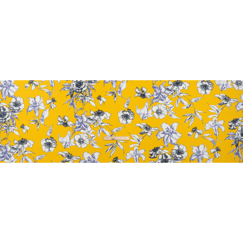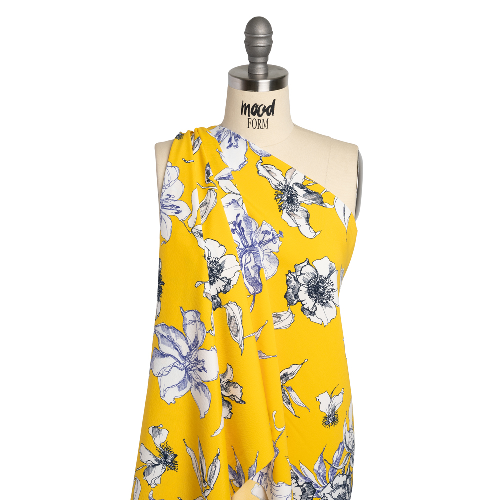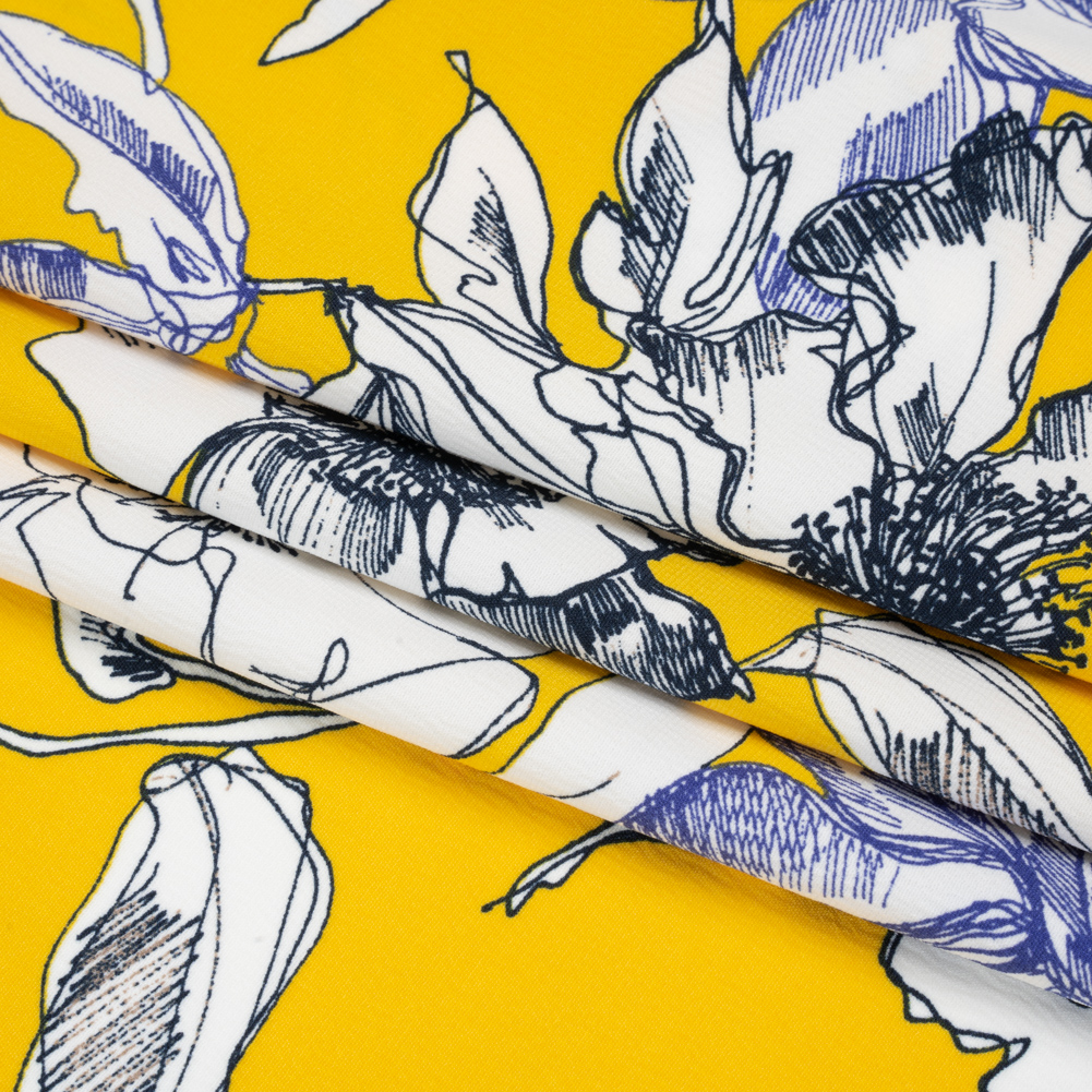 Polyester Satin-Backed Crepe - Yellow, Navy and Black Floral Sketches - Made in Italy