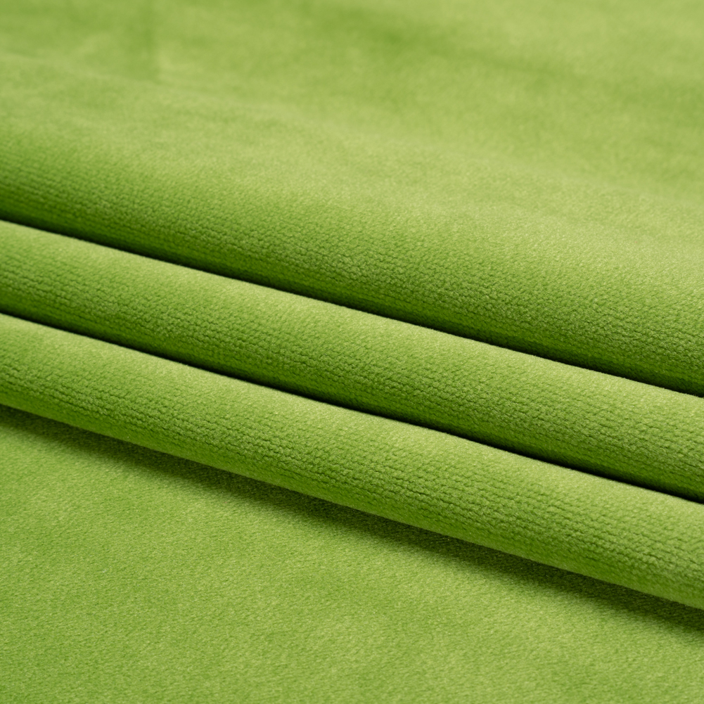 Step out of your comfort zone and into your dream room with this Thornton Leaf Polyester Home Decor Velvet! With a plush hand, subtle luster, and magnificent drape, this is a textile that is consistently tied to luxe designs and couture creations. Its back features a sleek, woven texture. To bring an elegant maturity to bedrooms, think tufted headboards, throw pillows, and long, pooling curtains (and light some candles for an added layer of warmth!). A velvet couch immediately becomes the centerpiece of a living room, equal in modern sophistication as it is in comfort. In a bright green color, find it impossible to plan an upholstery, bedding, or decor project without the soft texture of velvet. Completely opaque—a lining may be desired for added structure.