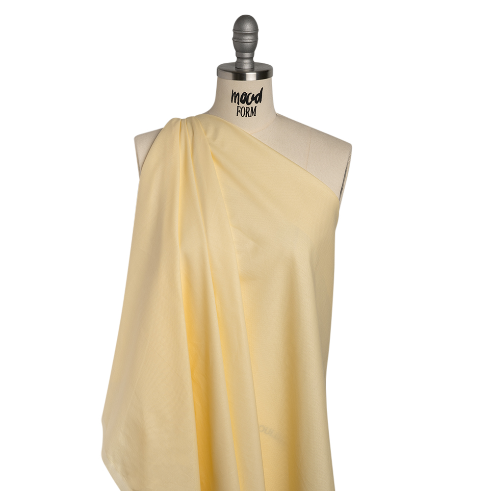 This Colorworks Popcorn Premium Solid Quilting Cotton is a snack for the senses—featuring a smooth hand and supple drape.Suggested Projects: Dresses, Shirts, Jackets, Quilts, Light Home DecorContent: 100% CottonStretch: NoneOpacity: Slightly TranslucentA pale buttery yellow brings a bit of joy to any project. With a smooth hand, supple drape, and no stretch, this fabric is crafted for intricate quilt work—a stable weave and silky finish are perfect for anything from classic piecework and wholecloth quilting to appliqués and art quilts to English paper piecing—yet it effortlessly lends itself to lightweight home décor, craft, and fashion projects, too.Whether you’re designing breezy shift dresses, gathered patchwork skirts, or crisp button-downs and shorts, this fabric brings a touch of elegance to every stitch—or dream bigger with flowing floor-length gowns or sharply tailored jackets and trousers, perfect for an evening out. Slightly translucent, a lining is recommended for added opacity and a refined finish.