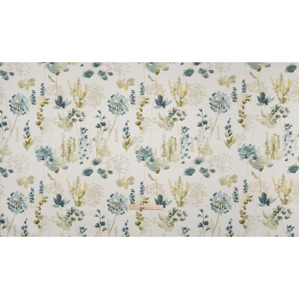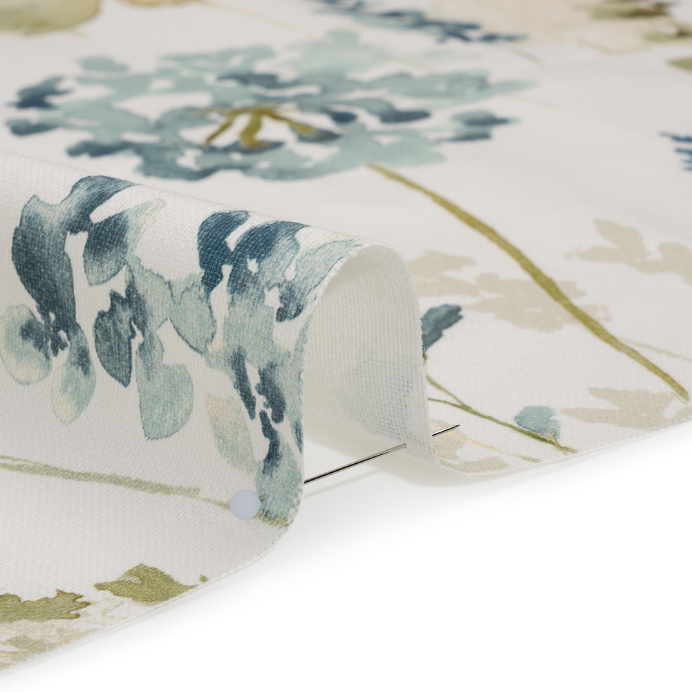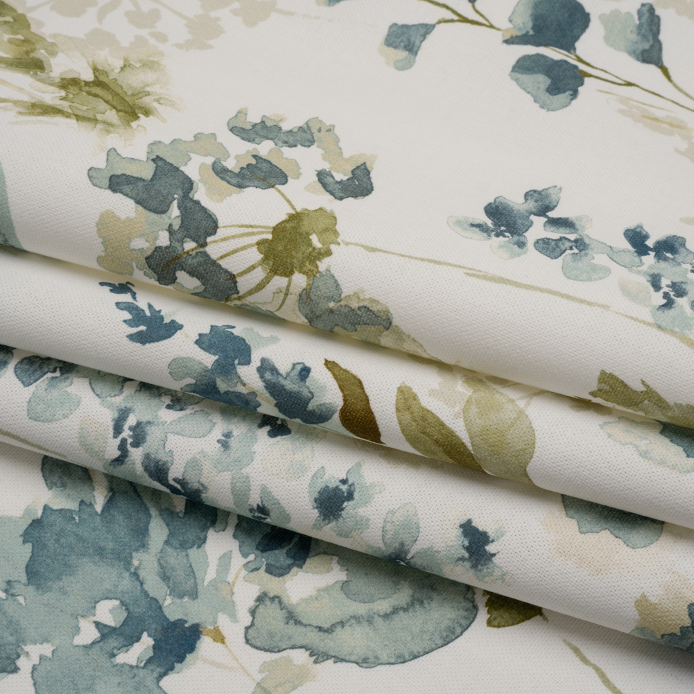 Create an alcove of relaxation within your home with this Azure Watercolor Blooms Printed Cotton Canvas—featuring a smooth, lightly tactile hand and semi-structured drape.Suggested Projects: Curtains, Throw Pillows, Headboards, JacketsContent: 100% CottonStretch: NoneOpacity: Slightly TranslucentWatercolor strokes of azure blue, sage green, and warm gray bloom across a cream canvas, creating a timeless bouquet that stays fresh without a single drop of water. The artist in you is drawn to canvas—a fabric that sways between rustic and refined, offering itself easily to living rooms, kitchens, bedrooms, and even wardrobes. With a smooth, lightly tactile hand and semi-structured drape, it’s ideal for drapery and light upholstery projects like headboards, throw pillows, and curtains, or go the fashion route with structured jackets and tote bags! Slightly translucent, a lining will increase opacity and structure.