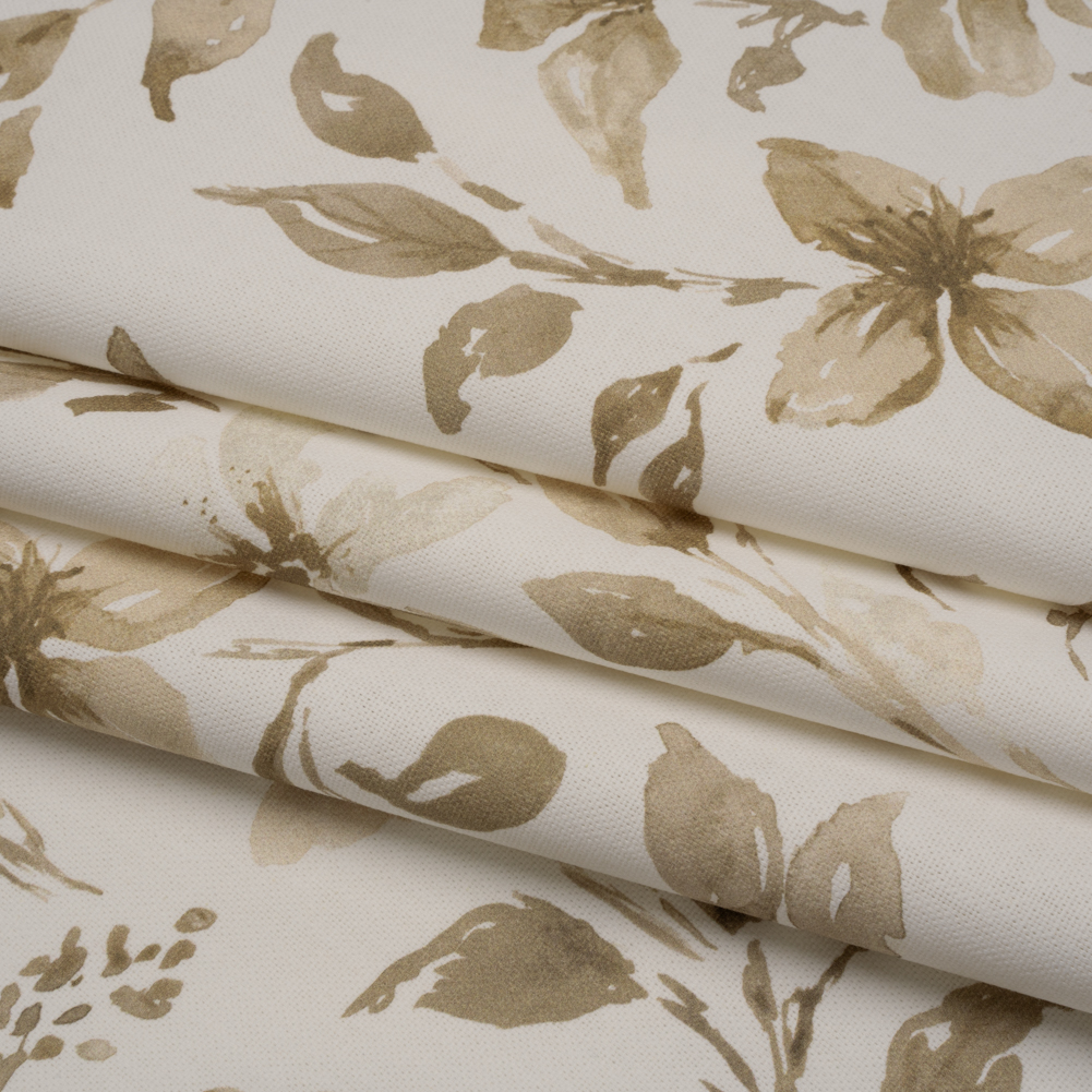 Flex your sewing skills with this Flax Watercolor Floral Stems Printed Cotton Canvas—featuring a smooth, lightly tactile hand and semi-structured drape.Suggested Projects: Curtains, Throw Pillows, Headboards, JacketsContent: 100% CottonStretch: NoneOpacity: Slightly TranslucentWatercolor flowers bloom beneath the guiding path of a paintbrush in vivid hues of beige and brown across a cream cotton canvas. The artist in you is drawn to canvas—a fabric that sways between rustic and refined, offering itself easily to living rooms, kitchens, bedrooms, and even wardrobes. With a smooth, lightly tactile hand and semi-structured drape, it’s ideal for drapery and light upholstery projects like headboards, throw pillows, and curtains, or go the fashion route with structured jackets and tote bags! Slightly translucent, a lining will increase opacity and structure.