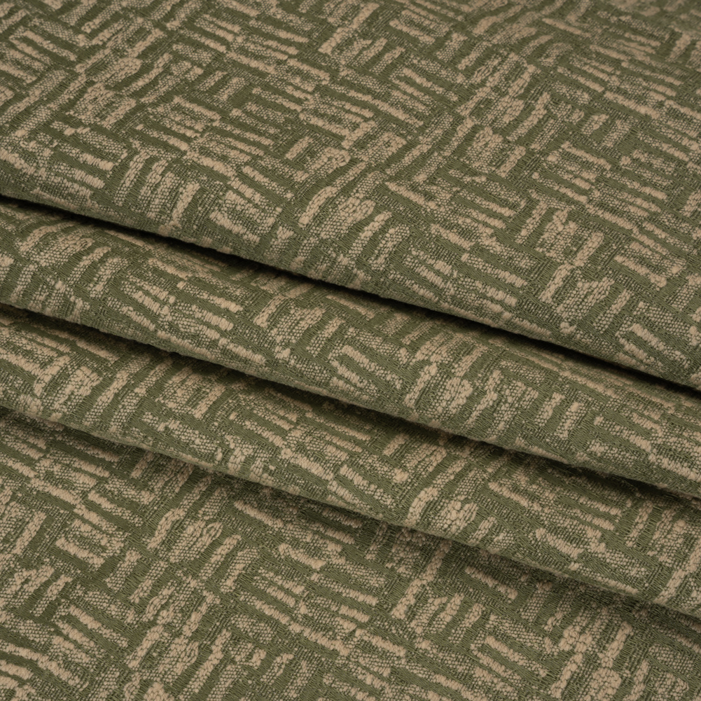 A sleek and dimensional hand, sustainable recycled fibers, and lush greens bring this Little Lines Drapery Jacquard to life for all your drapery needs.Suggested Projects: Curtains, Valances, Drapes, ShadesContent: 65% Recycled Polyester, 28% Cotton, 7% PolyesterStretch: NoneOpacity: Mostly OpaqueInspired by wooded scenes, this Jacquard brings comfort to your home. Beige lines rise from a lustrous forest green background with an embroidered-like appearance, yielding a sleek and soft hand. Falling with a supple drape, this lightweight fabric offers itself to valances and curtains for the elevated designer in us all. Though mostly opaque, a lining may be desired for added structure and opacity.