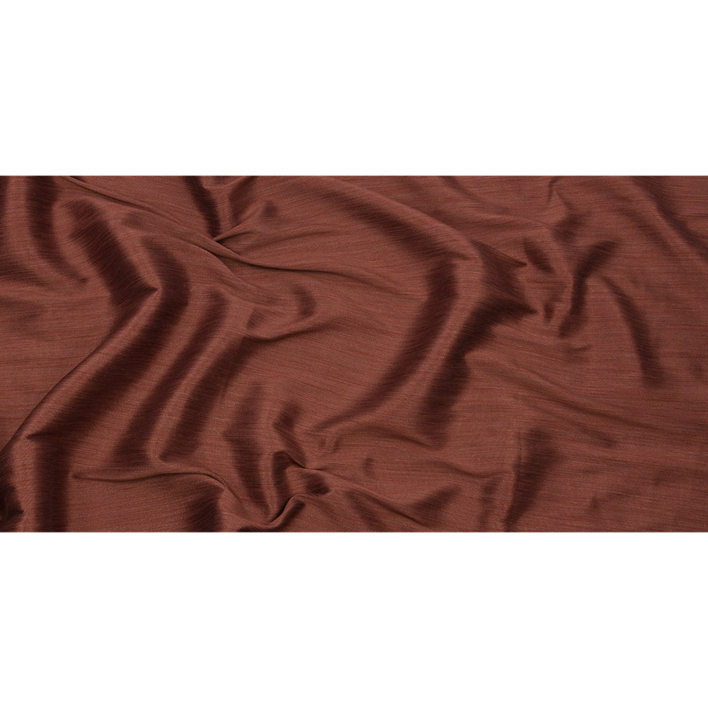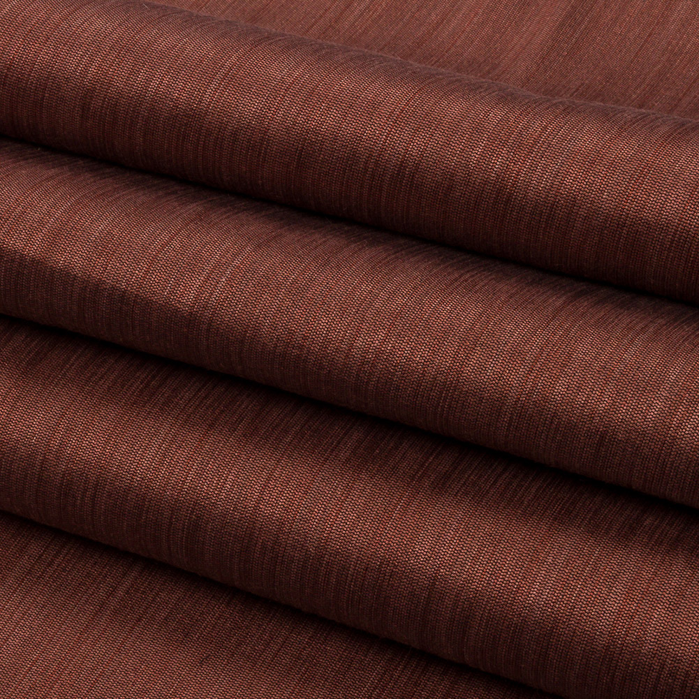 Bring warmth into your spaces with this British Imported Saffron Striated Recycled Polyester Bengaline. A weave of burgundy and black threads produces a subtle pebble-like texture and a face of slightly alternating hues. Paired with a luster and an easy drape, this elegant fabric would create dramatic drapes, long, pooling curtains, luxurious swags, or even light upholstery projects like throw pillows and seat covers. Slightly translucent, a lining can be added to lessen sun damage, but it's not needed for most projects.