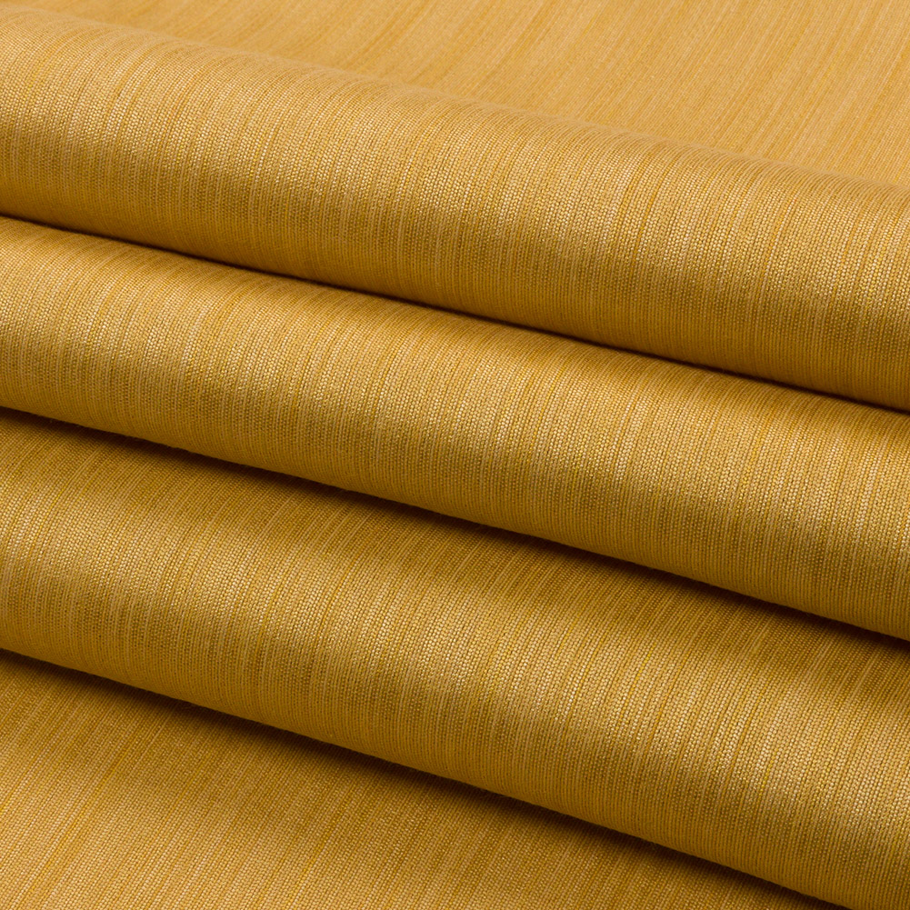 Warm up your space with a little more sunshine from this British Imported Sunflower Striated Recycled Polyester Bengaline. A weave of yellow and gold threads produces a subtle pebble-like texture and a face of slightly alternating hues. Paired with a luster and an easy drape, this elegant fabric would create dramatic drapes, long, pooling curtains, luxurious swags, or even light upholstery projects like throw pillows and seat covers. Slightly translucent, a lining can be added to lessen sun damage, but it's not needed for most projects.