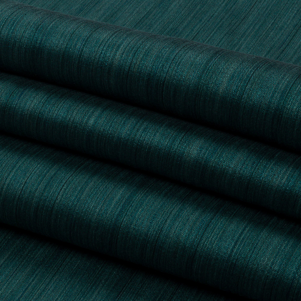 You can't teal the spotlight from this British Imported Teal Striated Recycled Polyester Bengaline even if you tried. A weave of vibrant teal and black threads produces a subtle pebble-like texture and a face of slightly alternating hues. Paired with a luster and an easy drape, this elegant fabric would create dramatic drapes, long, pooling curtains, luxurious swags, or even light upholstery projects like throw pillows and seat covers. Slightly translucent, a lining can be added to lessen sun damage, but it's not needed for most projects.