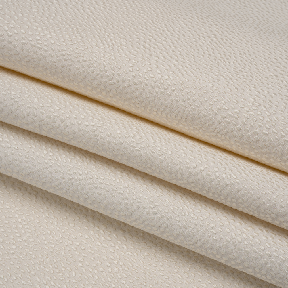 Sophistication comes naturally to this Ivory Little All-Over Spots Recycled Polyester Jacquard. With a sleek, tactile hand and slightly structured yet malleable drape, it’s an easy way to introduce texture to your interior.Suggested Projects: Stools, Ottomans, Sectionals, DraperiesContent: 79% Recycled Polyester, 21% PolyesterStretch: NoneOpacity: OpaqueYou’ll want this Jacquard to be all over your home. Little lustrous ivory spots dot across an ivory background. Their dimension, recalling the look and feel of embroidery, keeps designers and home sewists alike coming back to Jacquards decade after decade. Thanks to the Jacquard loom, this fabric yields a sophisticated, complex face that applies to upholstery and drapery projects alike. We envision this Jacquard’s slightly structured yet malleable drape and tactile hand becoming sleek bar stools, luxurious sectionals, eye-catching headboards, and billowing drapes. Opaque, a lining is not necessary.