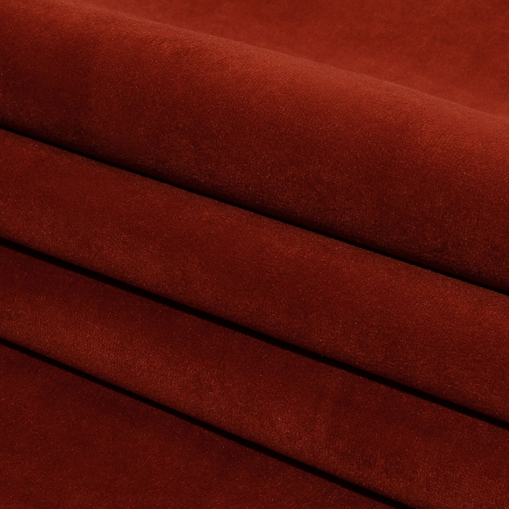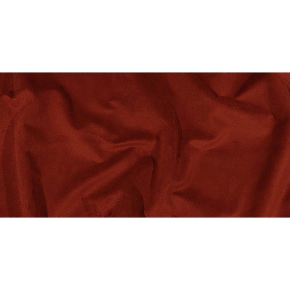 Fill your home with marvelous texture using this Rouge Polyester Velvet. Very plush, this velvet has an incredibly soft hand that you won't want to stop touching. With a somewhat structured drape and of medium weight, it is a great option for a number of upholstery applications. In an earthy red tone, add it to your bedroom as a headboard or use it for lounge chairs in your living area.Note that this polyester velvet has a slightly stiffer woven backing.