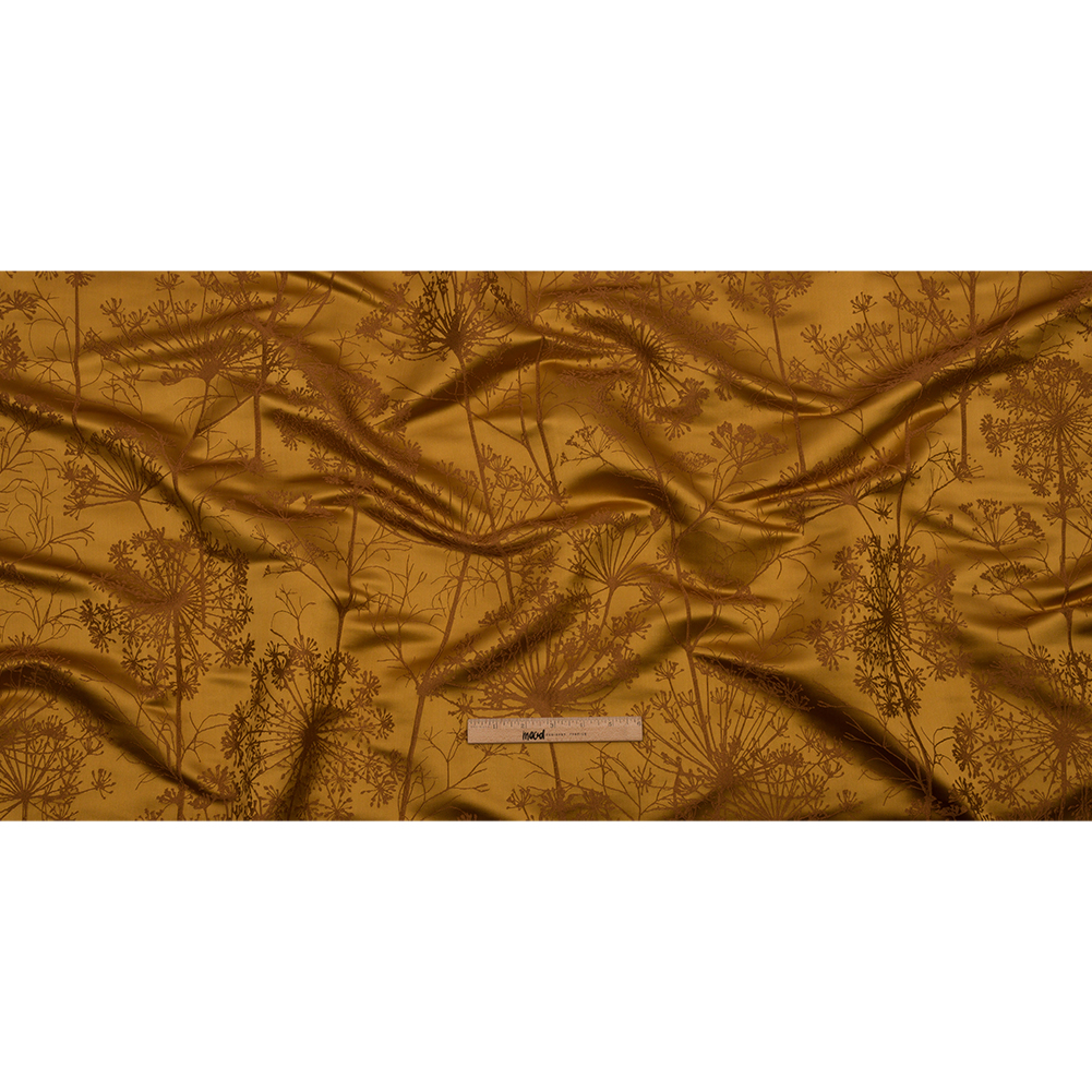 Satin-Faced Drapery Jacquard - Yellow Ochre Fennel Flowers - British Imported
