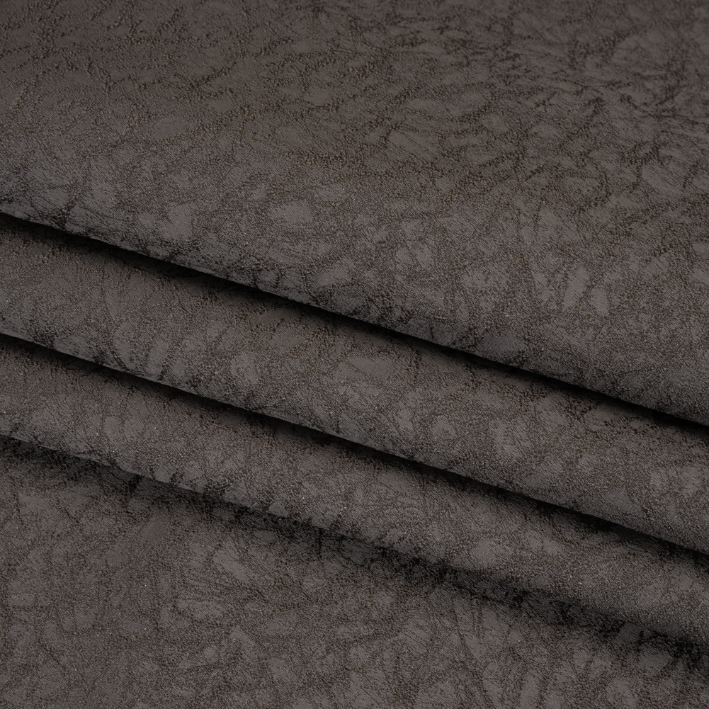 Strengthen your sewing repertoire with this Iron Cracked Satin-Faced Jacquard. With a soft, tactile hand and voluminous drape, take a crack at using this fabric for your next home project.Suggested Projects: Drapes, Curtains, Table Runners, Light UpholsteryContent: 83% Recycled Polyester, 17% PolyesterStretch: NoneOpacity: Slightly TranslucentSet the mood after the sun sets with this iron jacquard. The embroidered cracked design featured on this jacquard creates a wrinkled, distressed look adding both texture and dimension to your space. Its satin-like, dark brownish-gray face is matched with a luminous finish letting its pattern pop. Thin with a medium weight, its versatility can take it from curtains to light upholstery to table runners! Play with both texture and pattern within your design theme and pair this lovely jacquard with a velvet for a modern look. Note that it is slightly translucent.