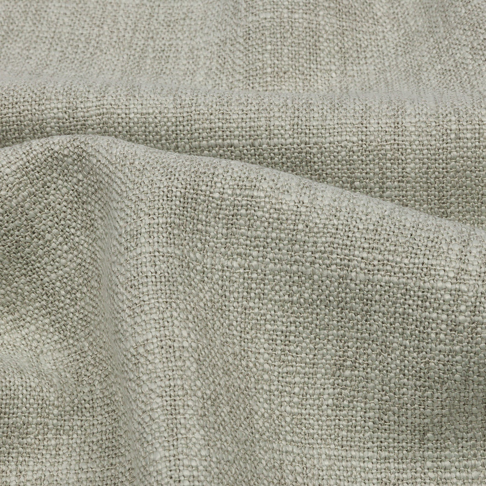 Upgrade your old window treatments with this British Imported Aloe Soft Textured Recycled Polyester Drapery Woven. A prominent weave of light greenish-gray threads textures the face, producing slight slubs and variation in hues. With a supple drape and no stretch, create casual drapes, long, pooling curtains, and rustic valances. Design light upholstery projects like throw pillows and upholstered headboards, too. Slightly translucent, a lining may be necessary for added opacity.