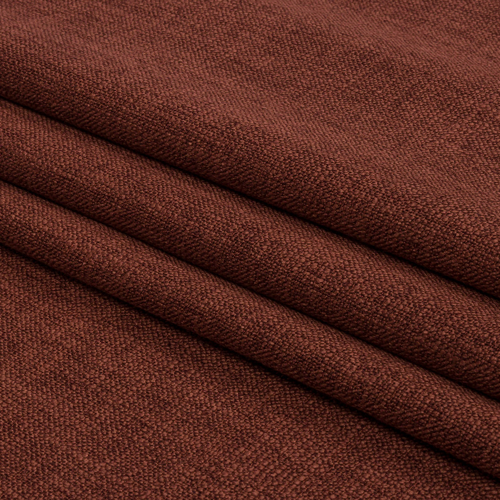 This British Imported Saffron Soft Textured Recycled Polyester Drapery Woven is perfect for designing a sophisticated, high-end look in any room. In a clay red hue, the weave takes on a linen-like appearance, giving it a softly slubbed hand. With an easy drape and no stretch, create dramatic drapes, pooling curtains, elegant swags, valances, or even light upholstery projects like throw pillows and upholstered headboards. Slightly translucent, a lining can be added to increase opacity.