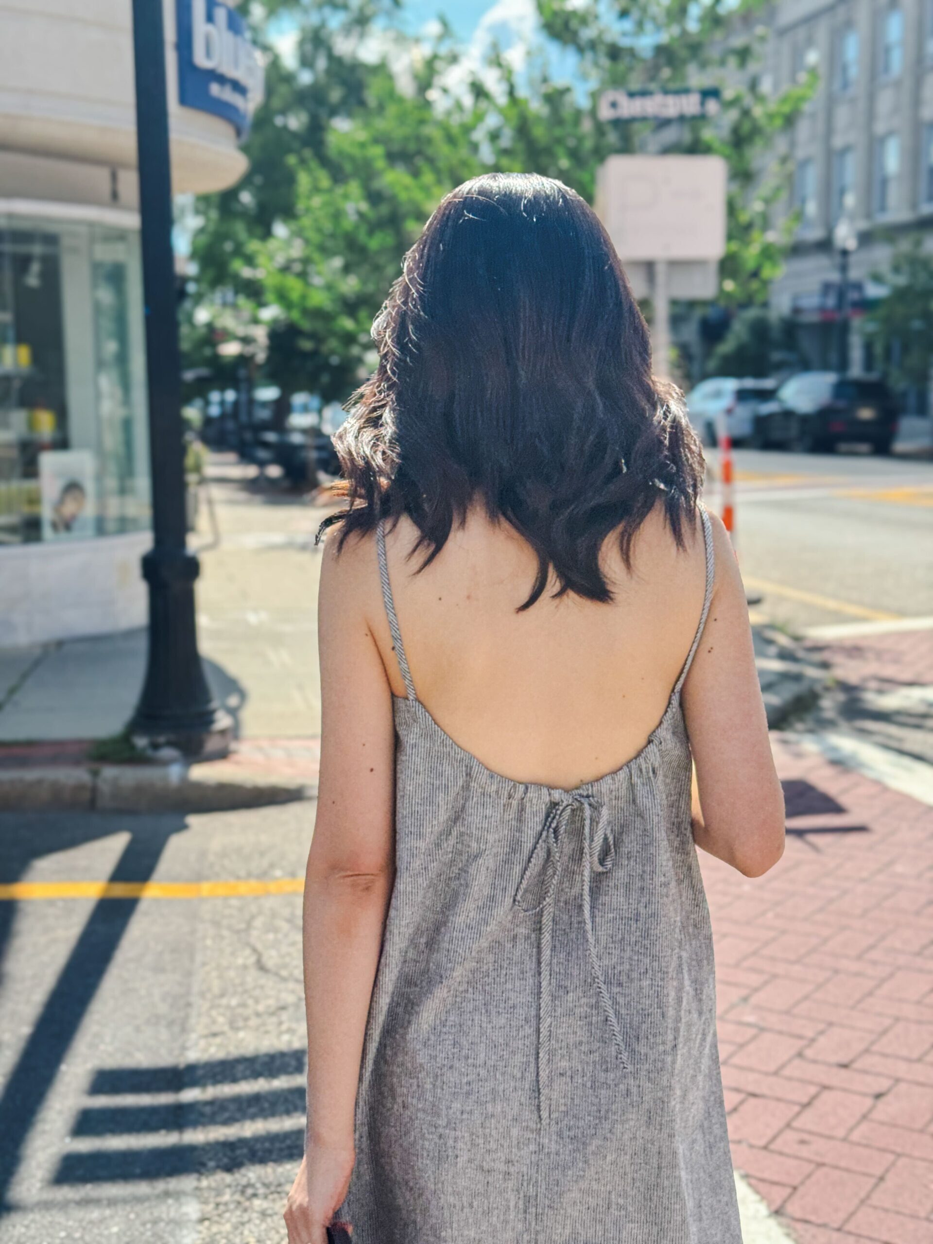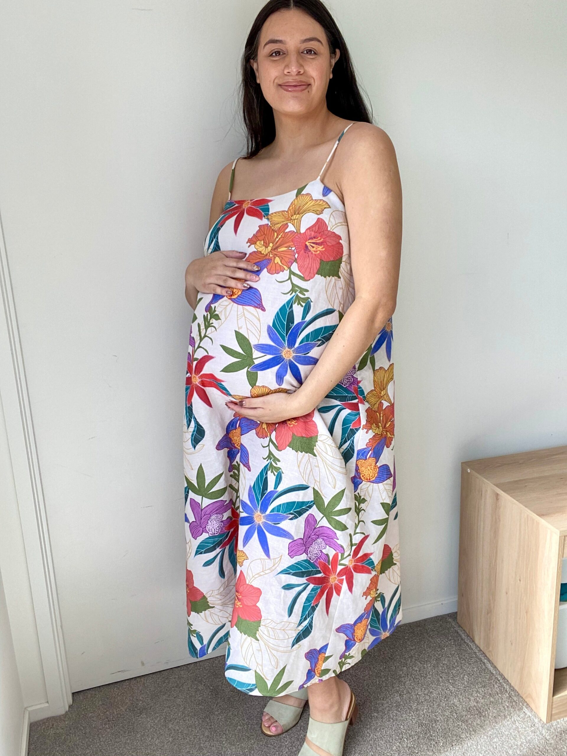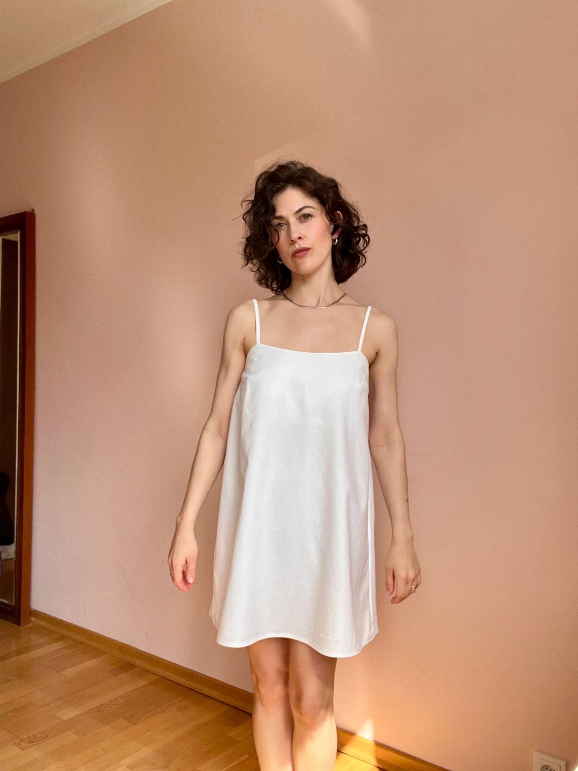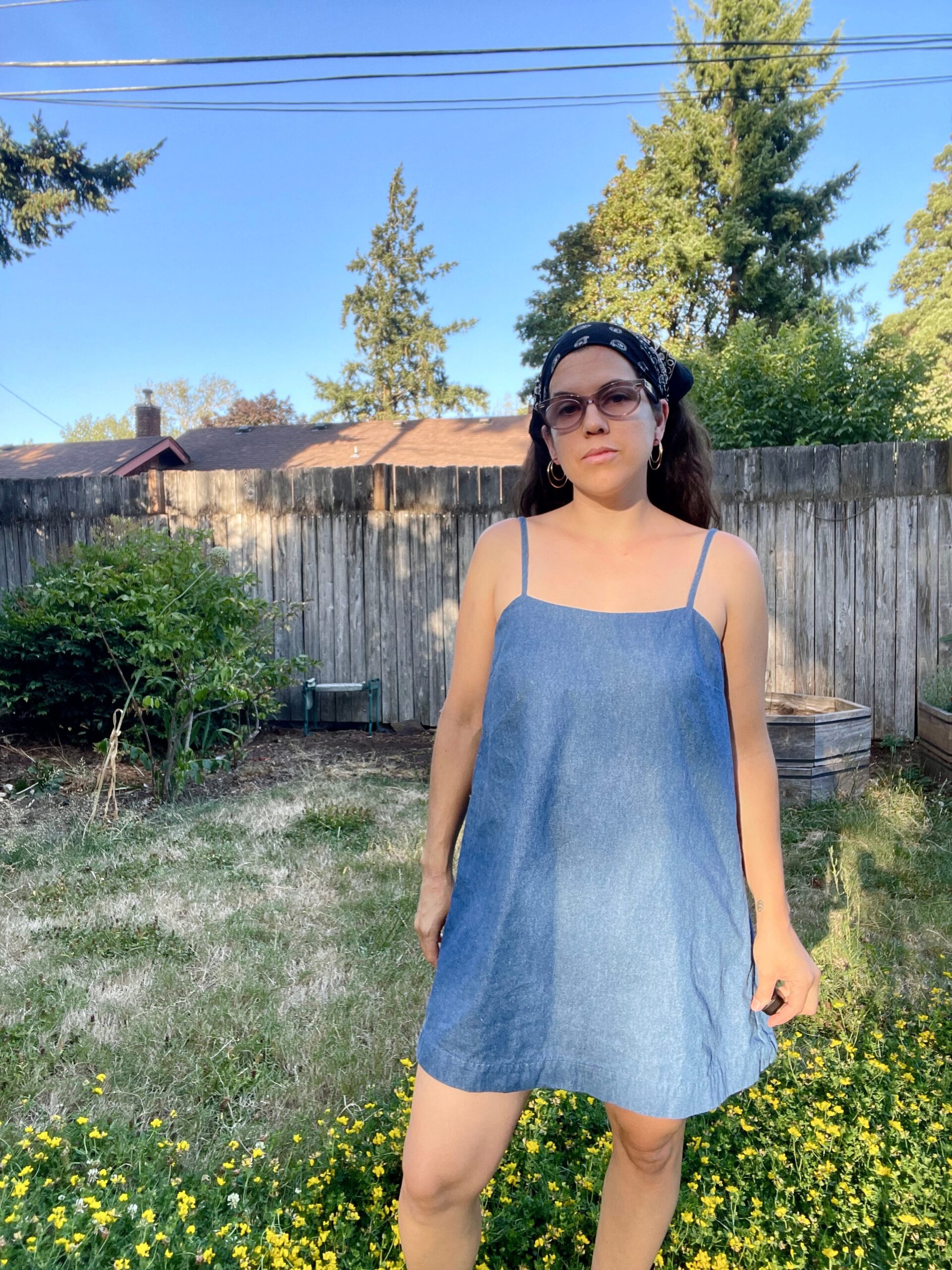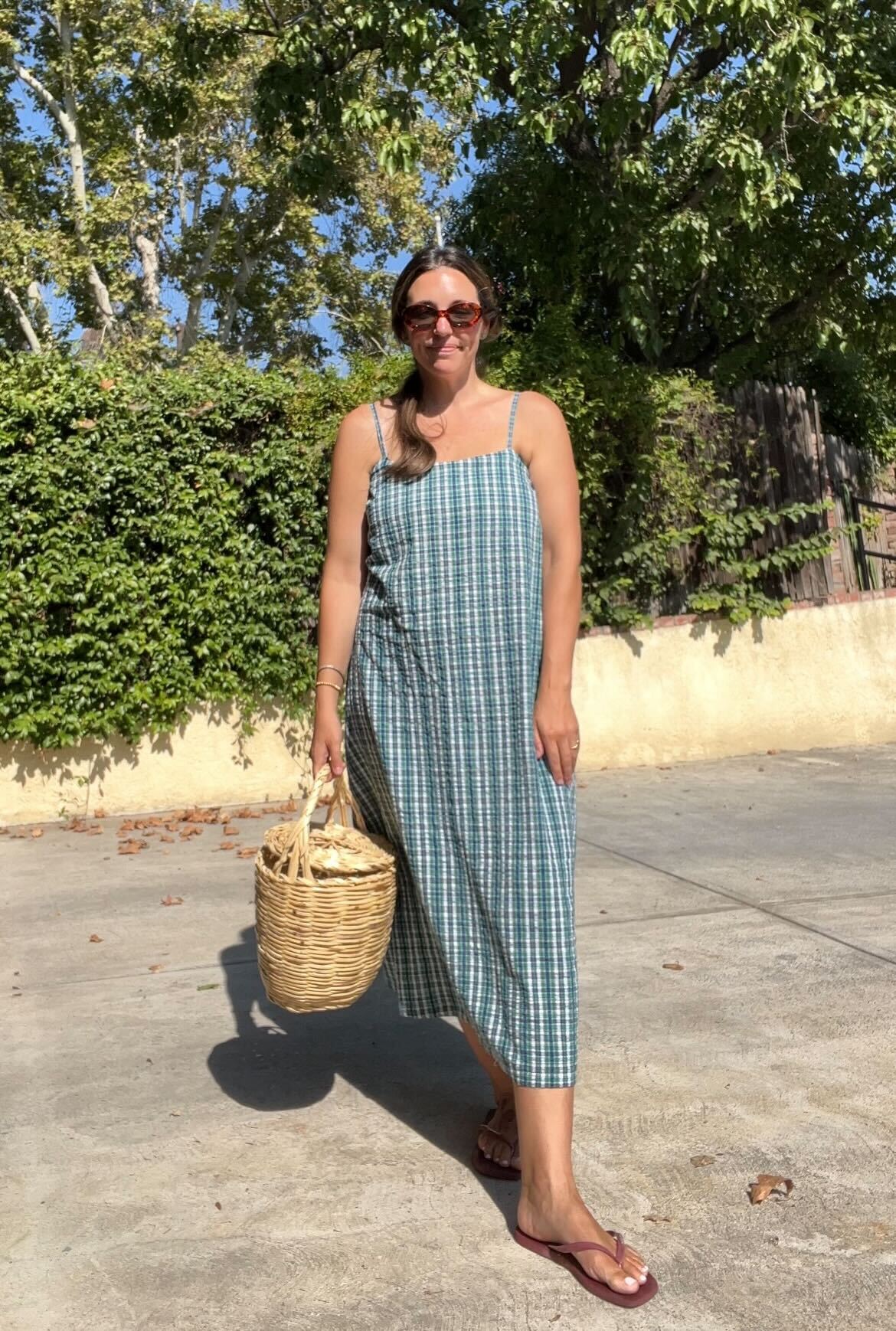 This pattern is made for woven fabrics and the look of it will change a lot depending on the fabric you choose. A crepe will make it date night ready, whereas a linen or cotton will make it the perfect everyday summer dress. Other favorites include seersucker for ultimate coolness, cotton poplin for a crisp and billowy silhouette, or any rayon/tencel for a beautiful drape. If choosing a thicker fabric, like linen, you may want to use a matching, lighter weight fabric for the facing/bralette.