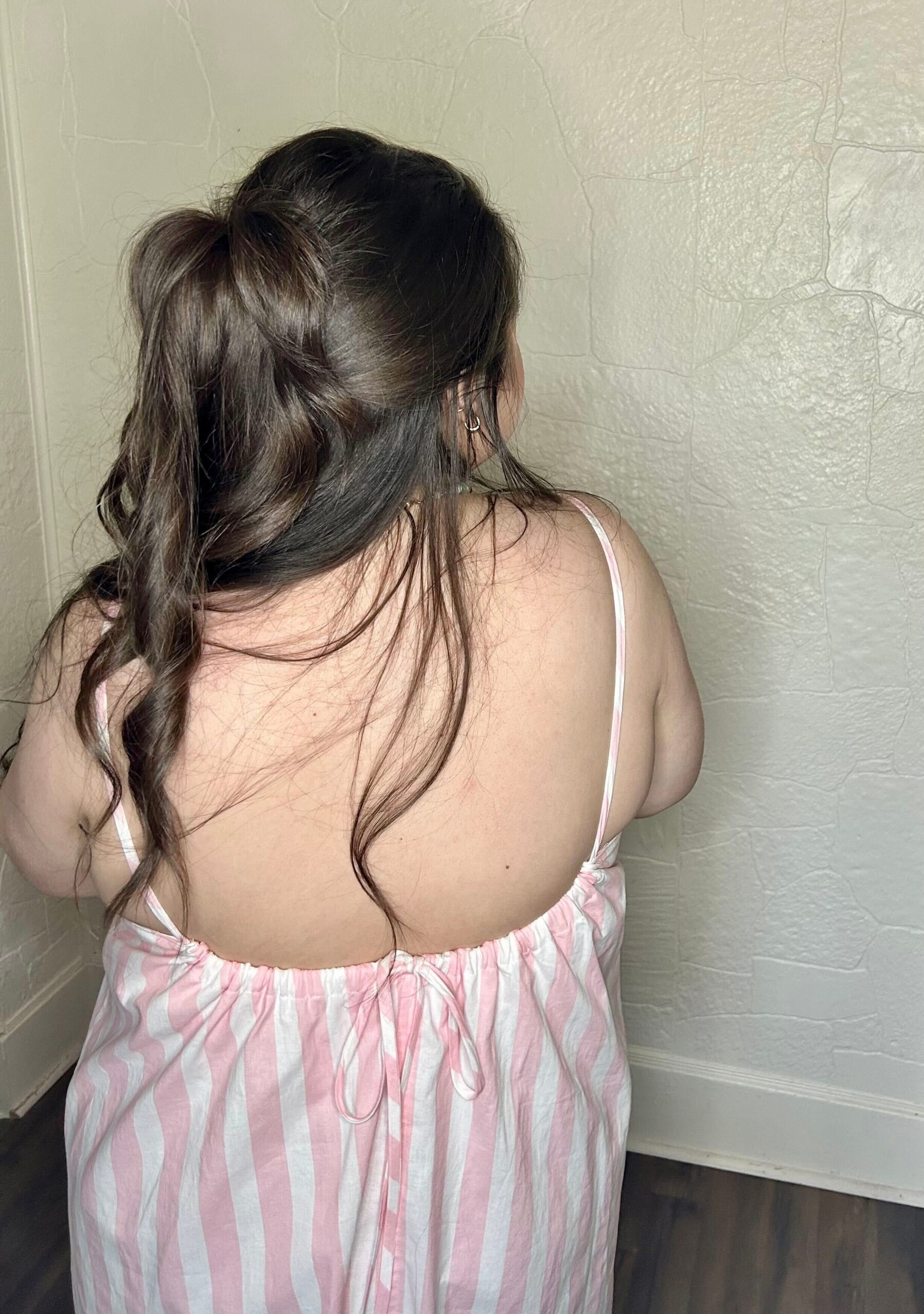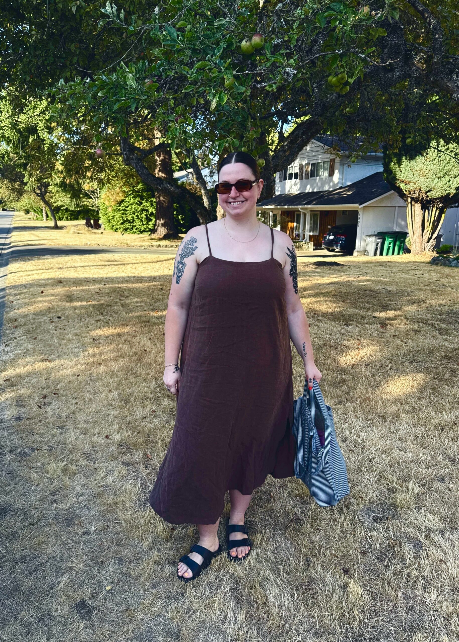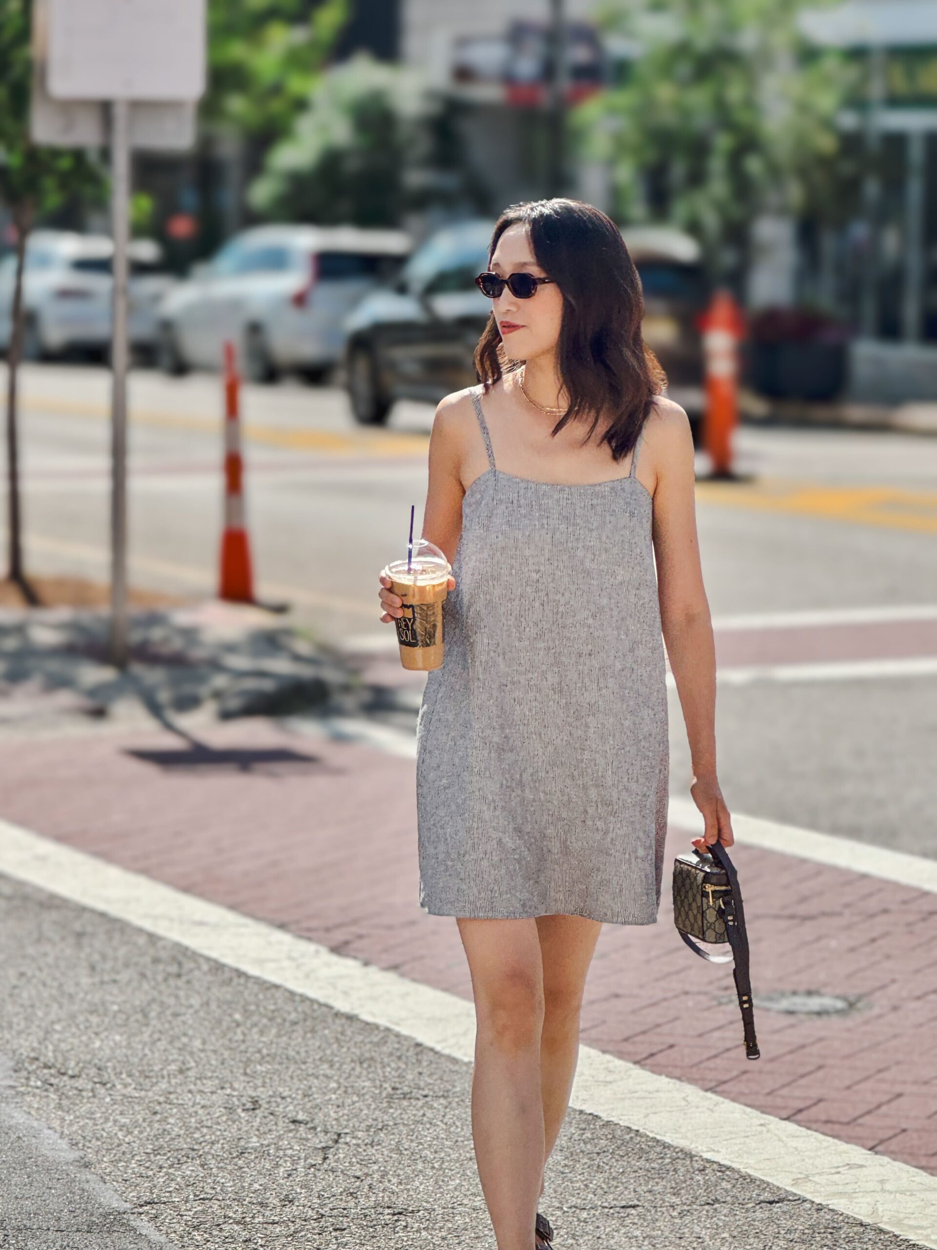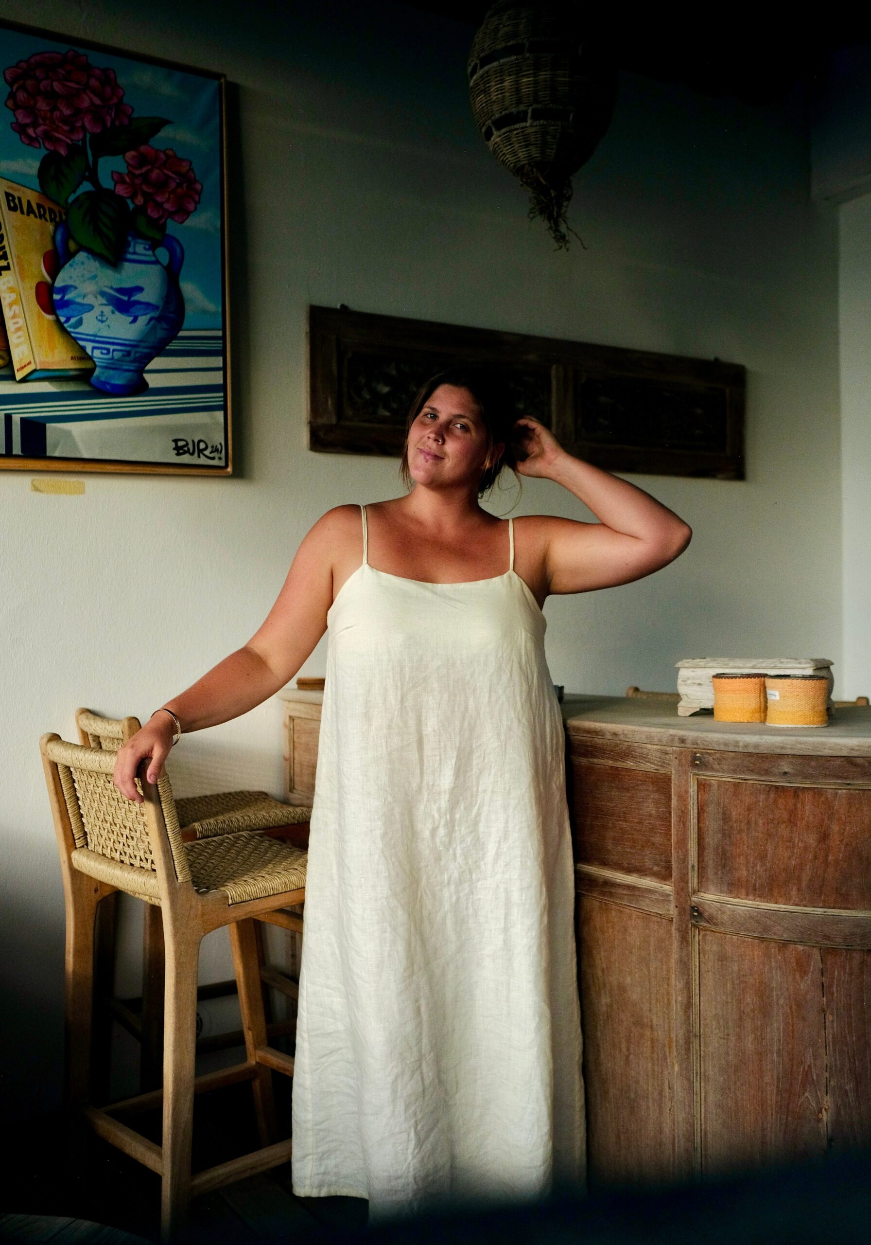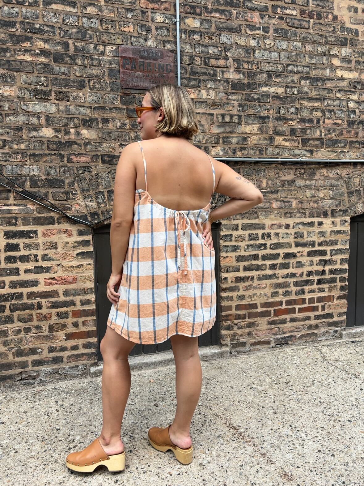 This pattern is made for woven fabrics and the look of it will change a lot depending on the fabric you choose. A crepe will make it date night ready, whereas a linen or cotton will make it the perfect everyday summer dress. Other favorites include seersucker for ultimate coolness, cotton poplin for a crisp and billowy silhouette, or any rayon/tencel for a beautiful drape. If choosing a thicker fabric, like linen, you may want to use a matching, lighter weight fabric for the facing/bralette.