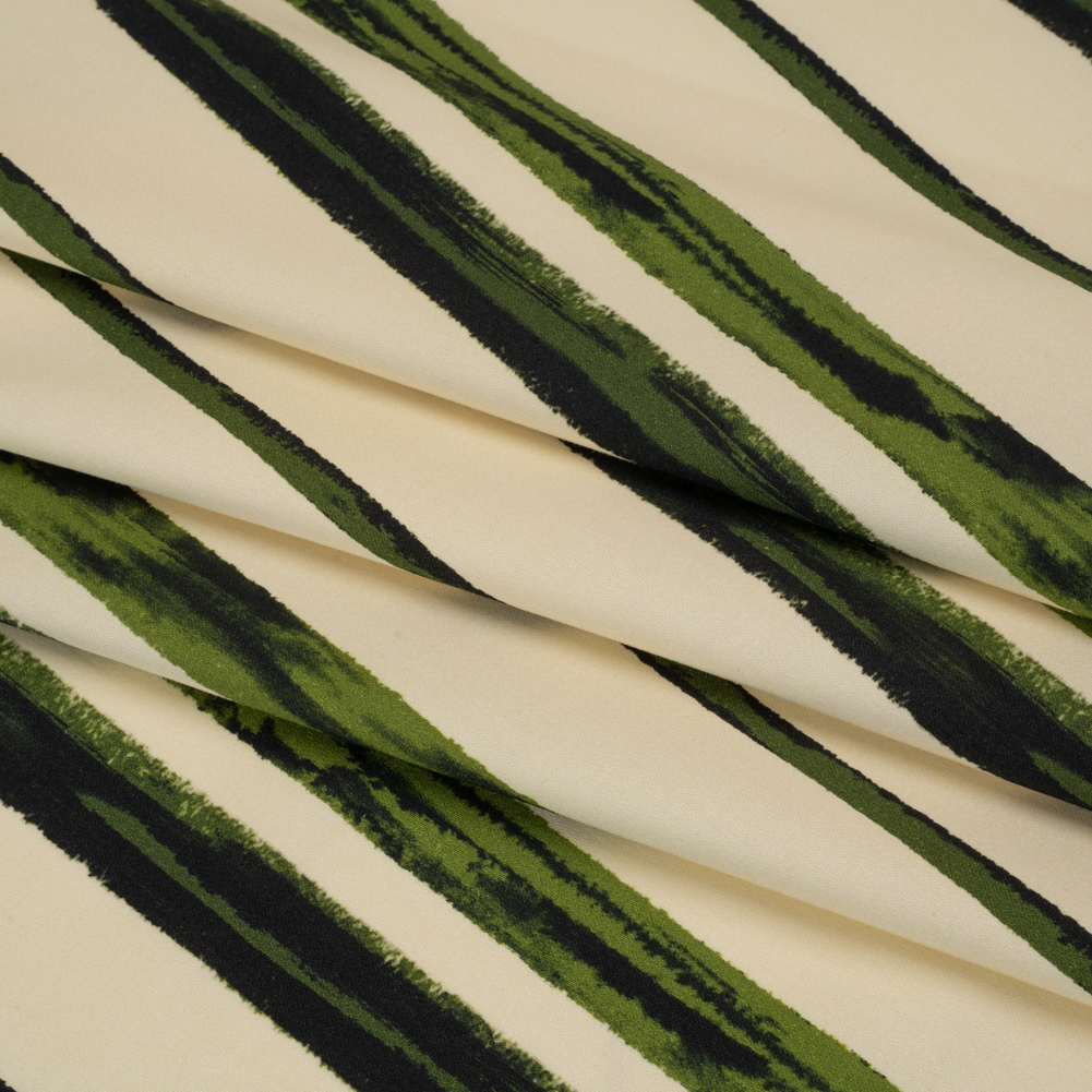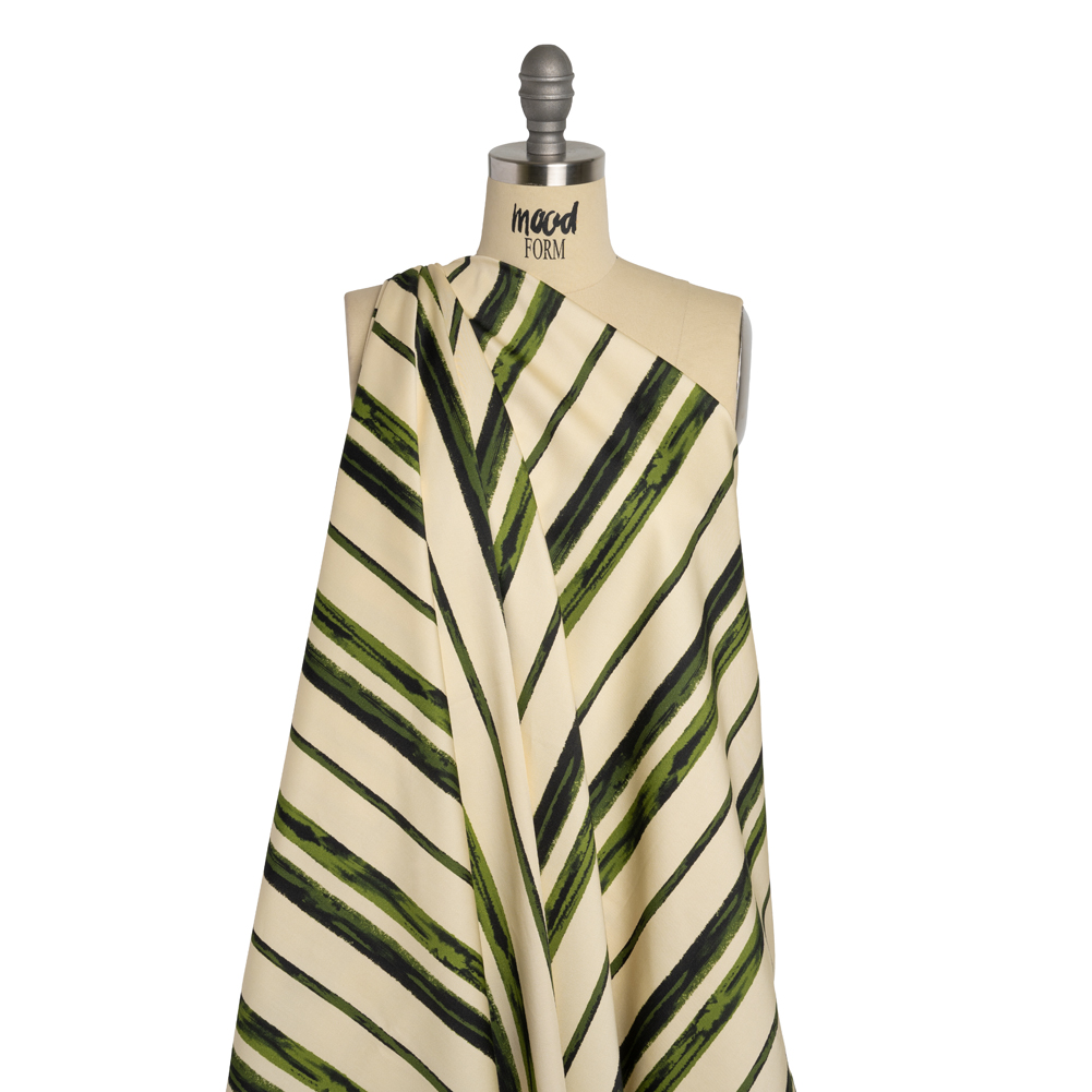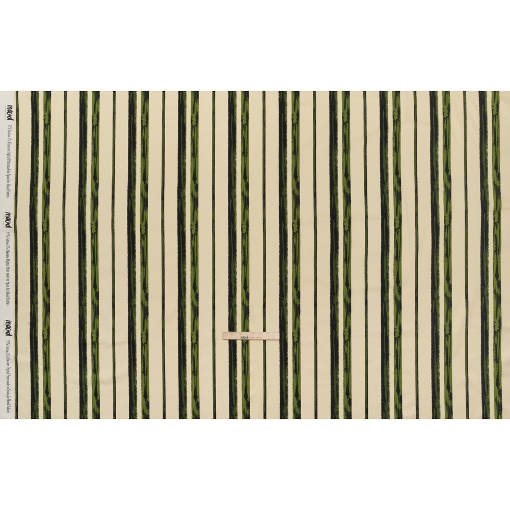 Stretch Cotton Sateen - Cream and Green Painted Stripes - Verdant Trail Print - Mood Exclusive Acadia Collection