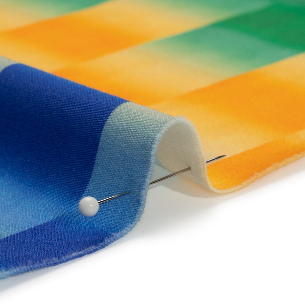 Stretch Cotton Sateen - Orange and Blue Gradient Checkered Stripes - Checks Out Print - Mood Exclusive Marigold Collection