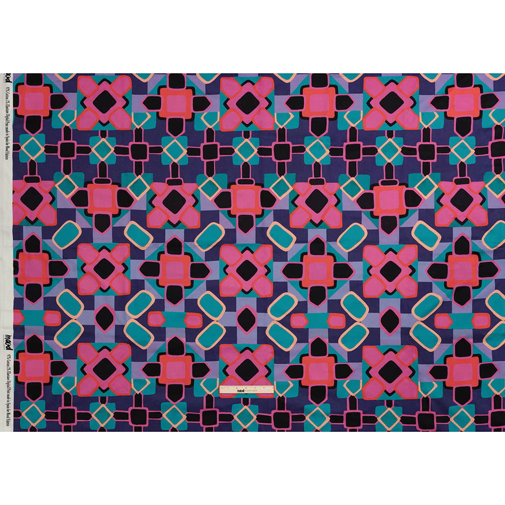 Stretch Cotton Sateen - Teal and Pink Geometric Tiles - Jukebox Jivin' Print - Mood Exclusive Yesterday Collection