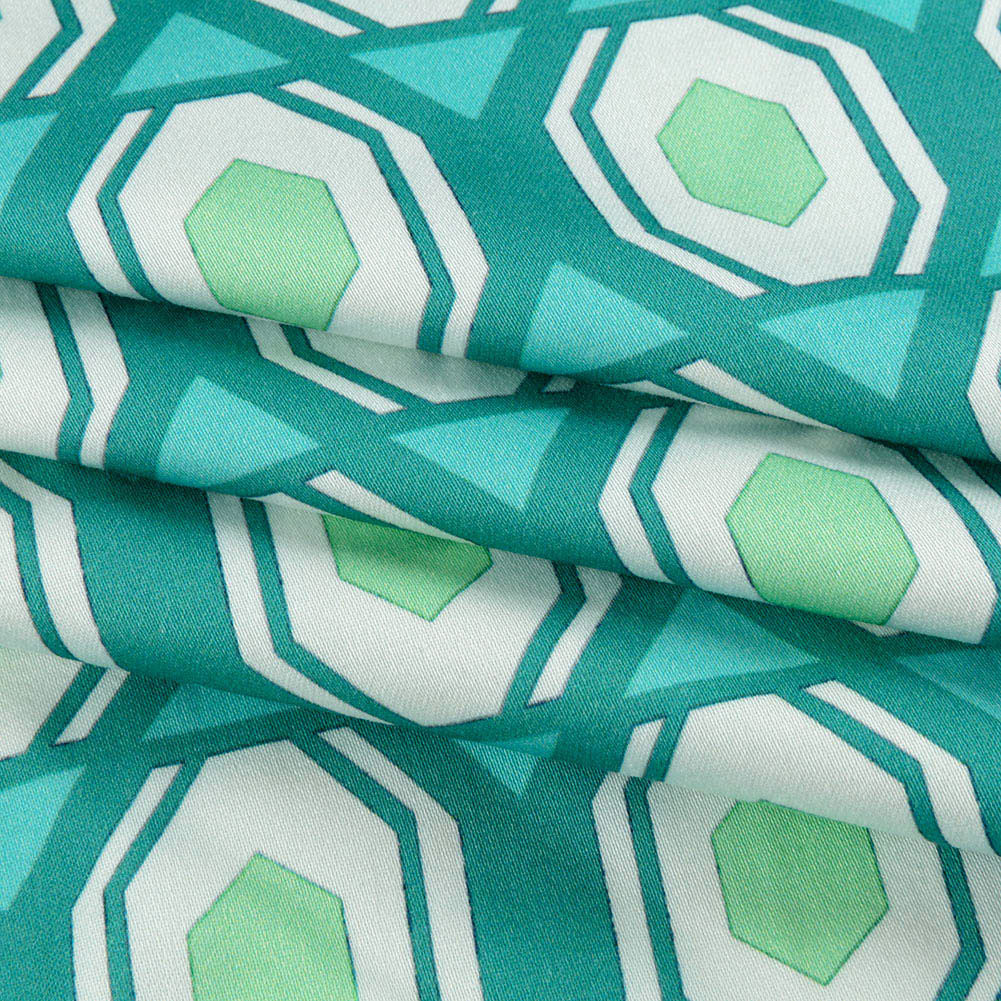 Stretch Cotton Sateen – Turquoise Honeycomb Diamonds – Arcade Fever Print – Mood Exclusive Yesterday Collection