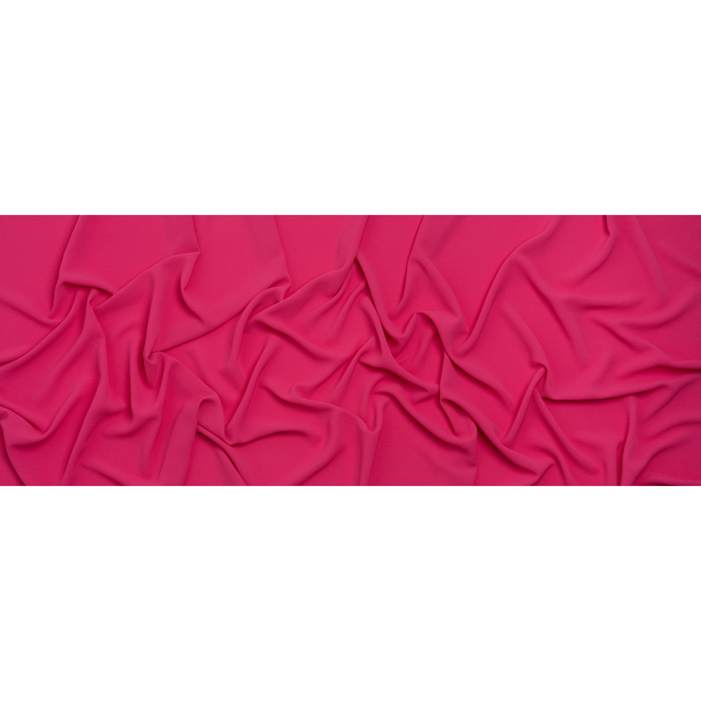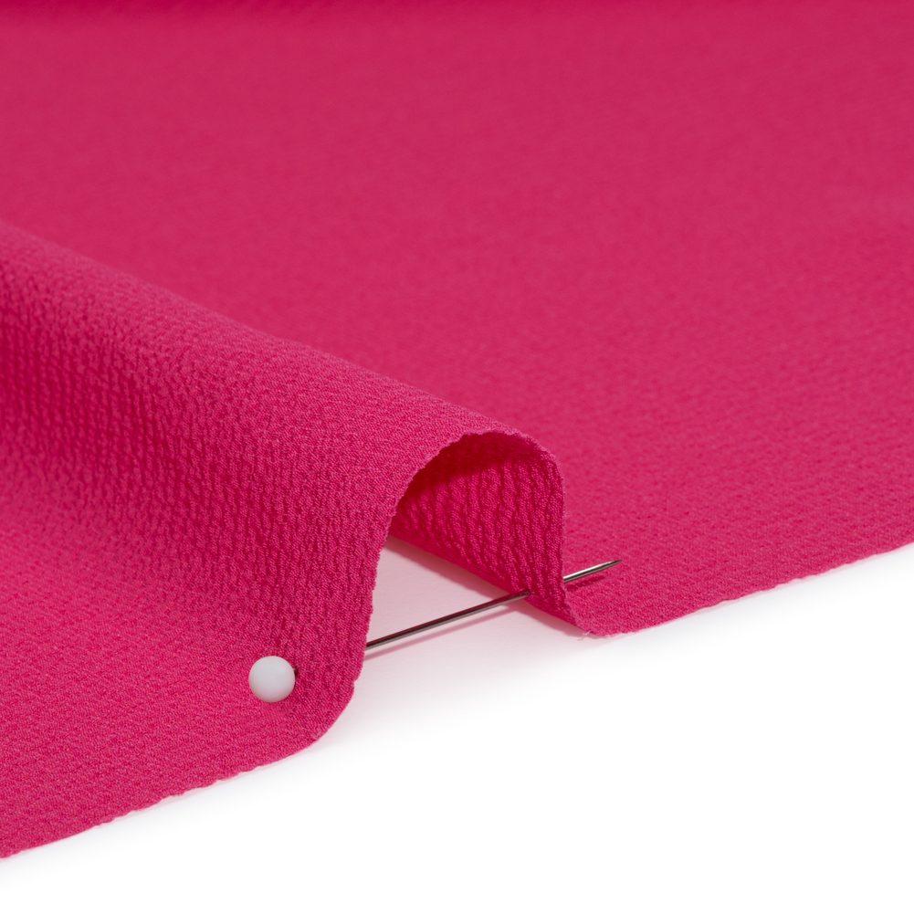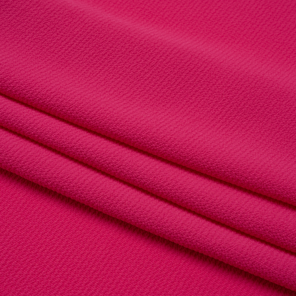 Bright designs bloom from this Pink Stretch Polyester Crepe—featuring a grainy, tactile hand and fluid drape.Suggested Projects: Dresses, Skirts, Shirts, PantsContent: 97% Polyester, 3% SpandexStretch: 10% Weftwise, 25% WarpwiseOpacity: SheerYou’ll love this bright pink crepe—we pinky promise. A crisp, slightly tactile hand is met with a fluid drape and slight all-way stretch atop this lightweight and dreamy crepe. Crepe fabrics are typically well-known for their signature textured surfaces, made up of tightly twisted yarns—yet this particular crepe is rather smooth in comparison. Design with bouncy garments and simple day-to-night transitions in mind, crafting billowing blouses, relaxed dresses, pleated skirts, breezy button-ups, and more! Sheer, consider a lining for complete opacity and additional structure.