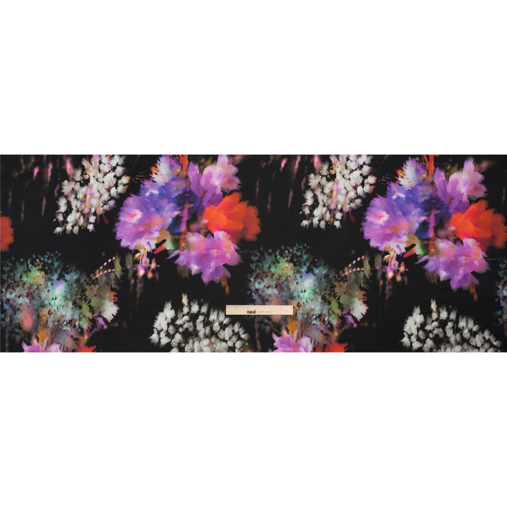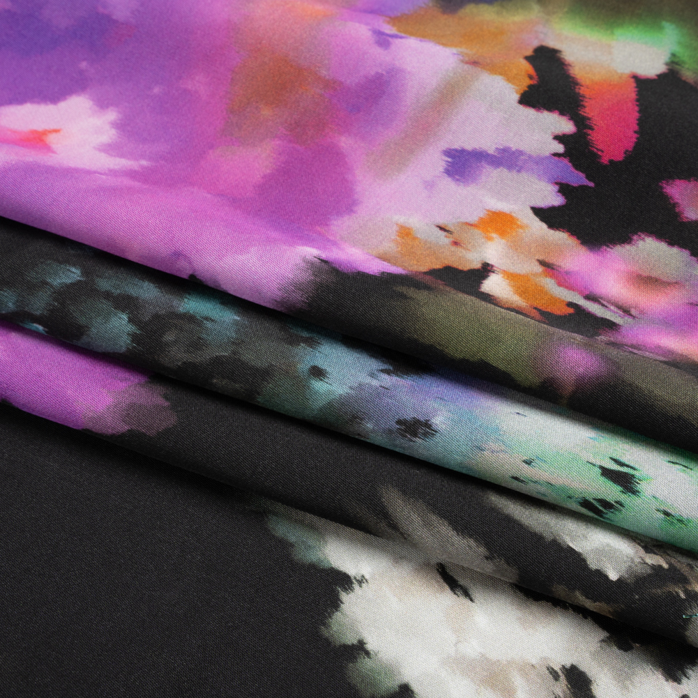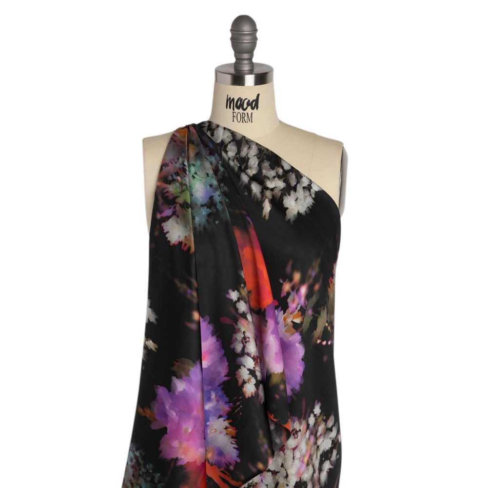 Sustainable and Recycled Viscose Satin Print - Purple, Red and Black Abstract Floral - Mood Exclusive Forest of Colors