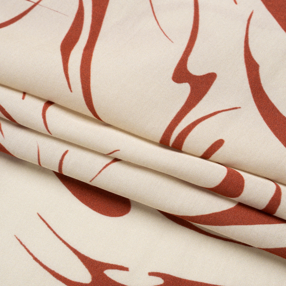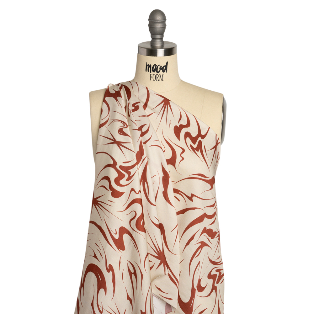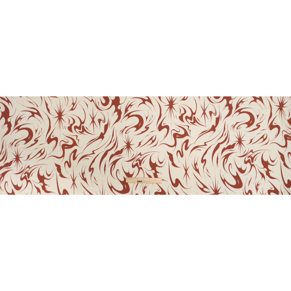 Sustainable and Recycled Viscose Satin Print - Red and Cream Swirls and Stars - Mood Exclusive Vincent's Hope