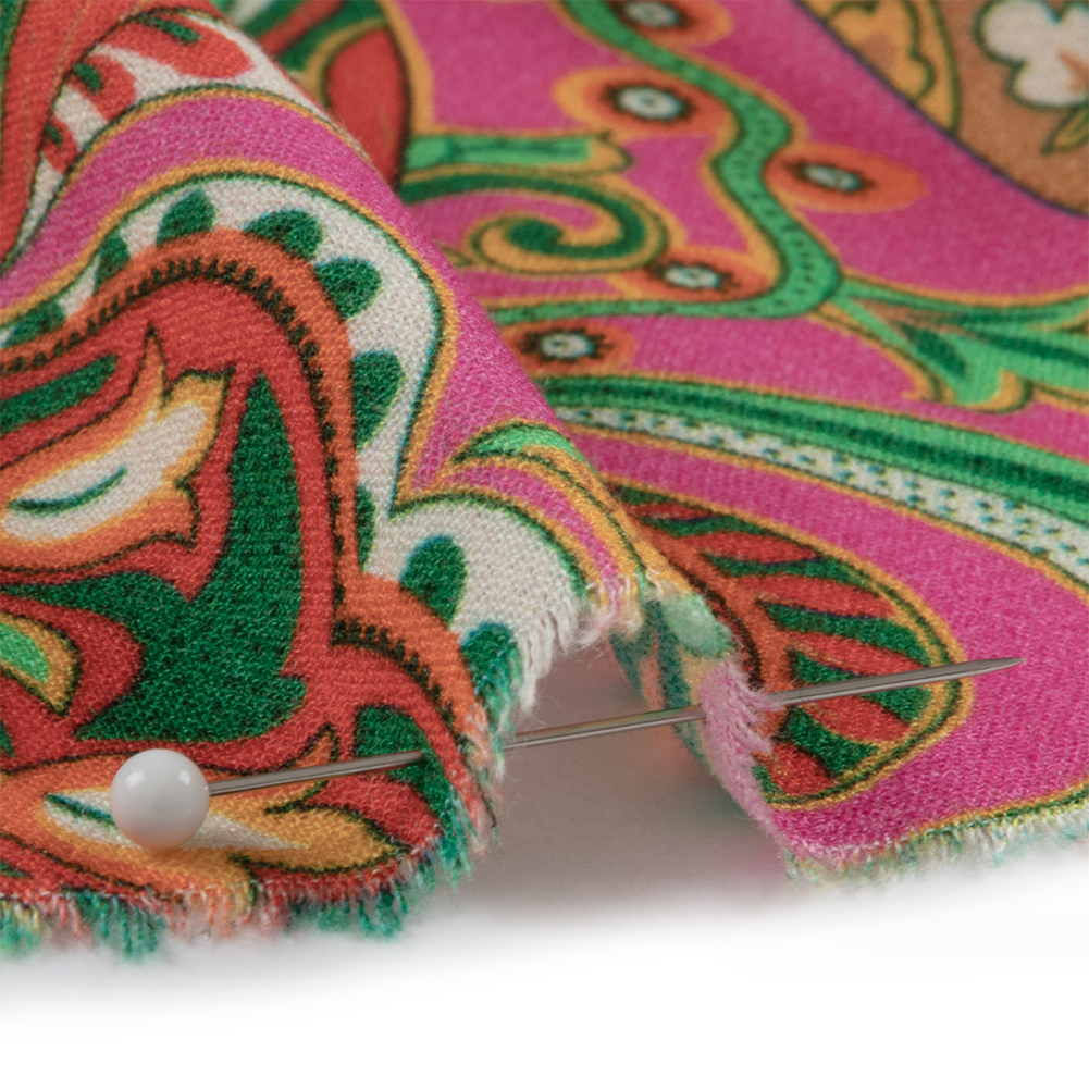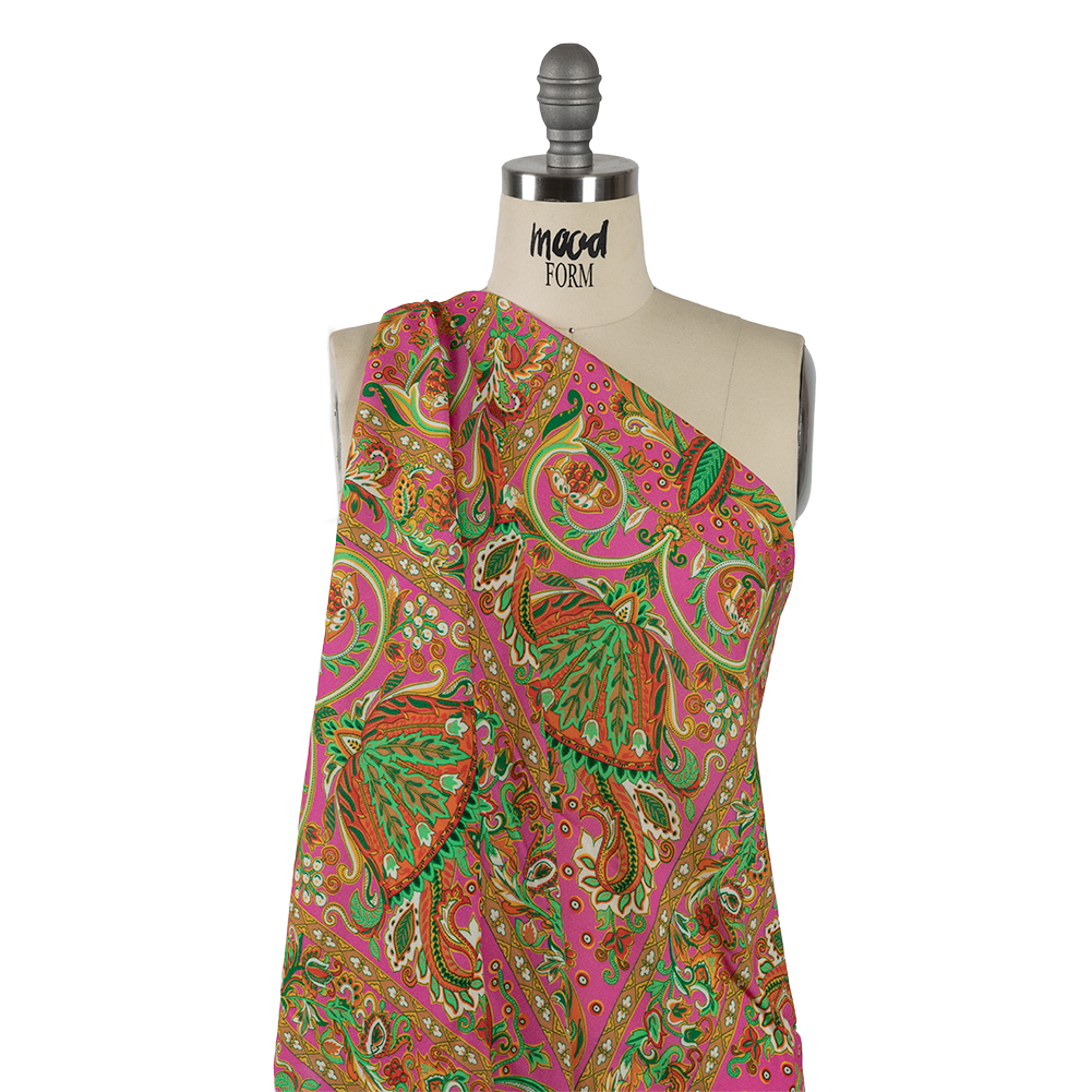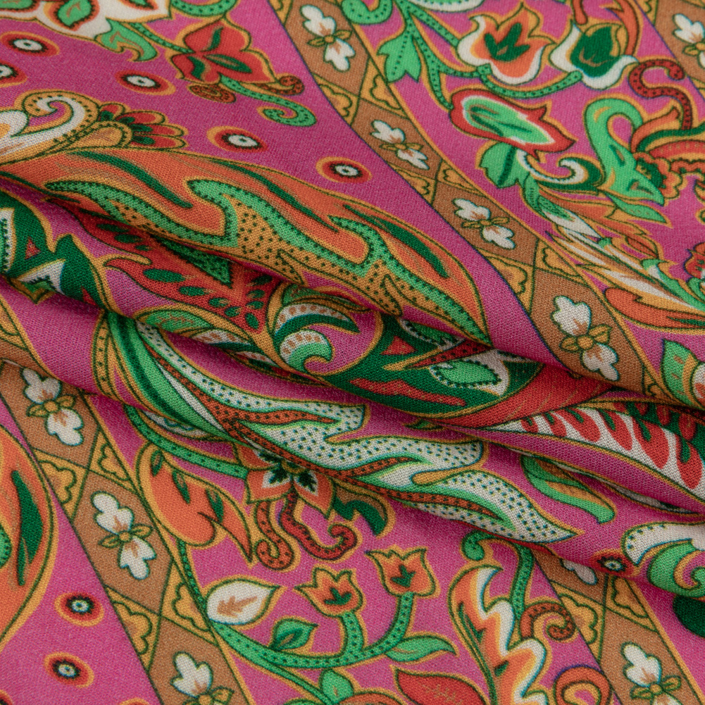 Sustainable Viscose Crepe – Pink Floral Paisley Stripes – Locust Lily Print – Mood Exclusive Gisele Collection
