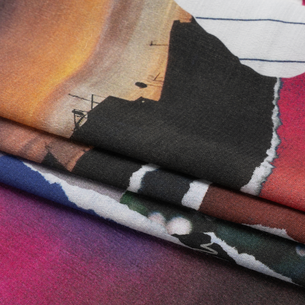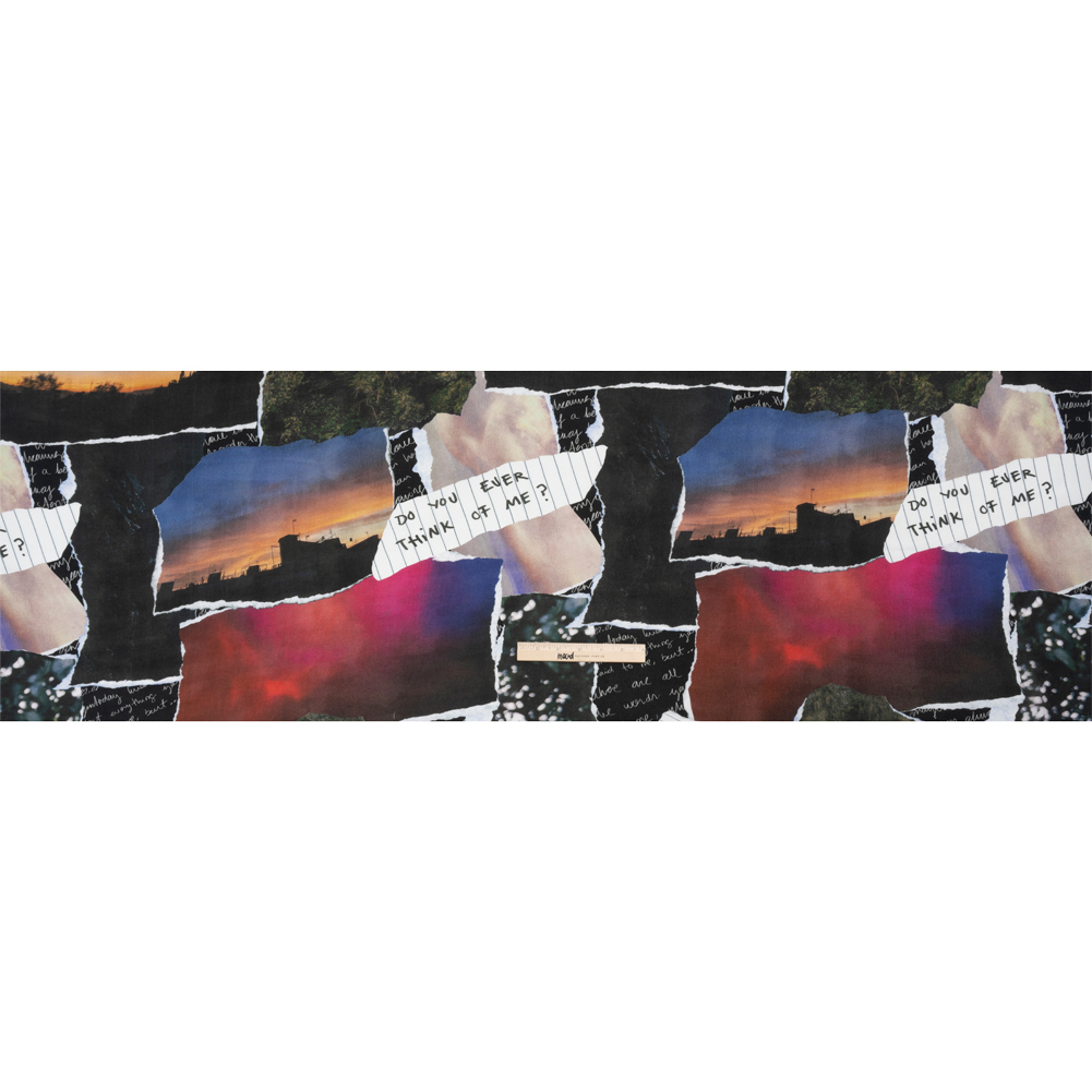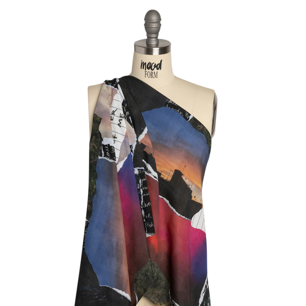Sustainable Viscose Crepe Print - Black, Red and Blue Scraps Collage - Mood Exclusive Thy Eternal Summer
