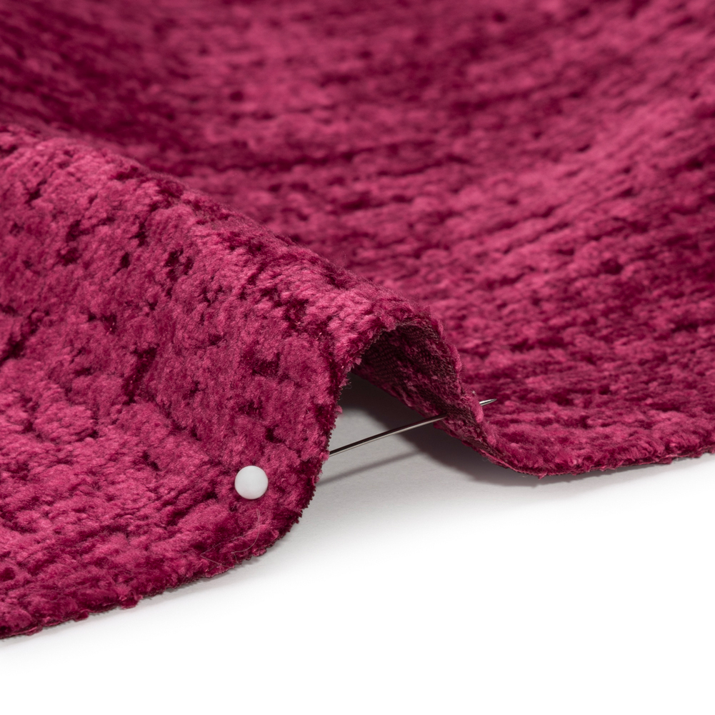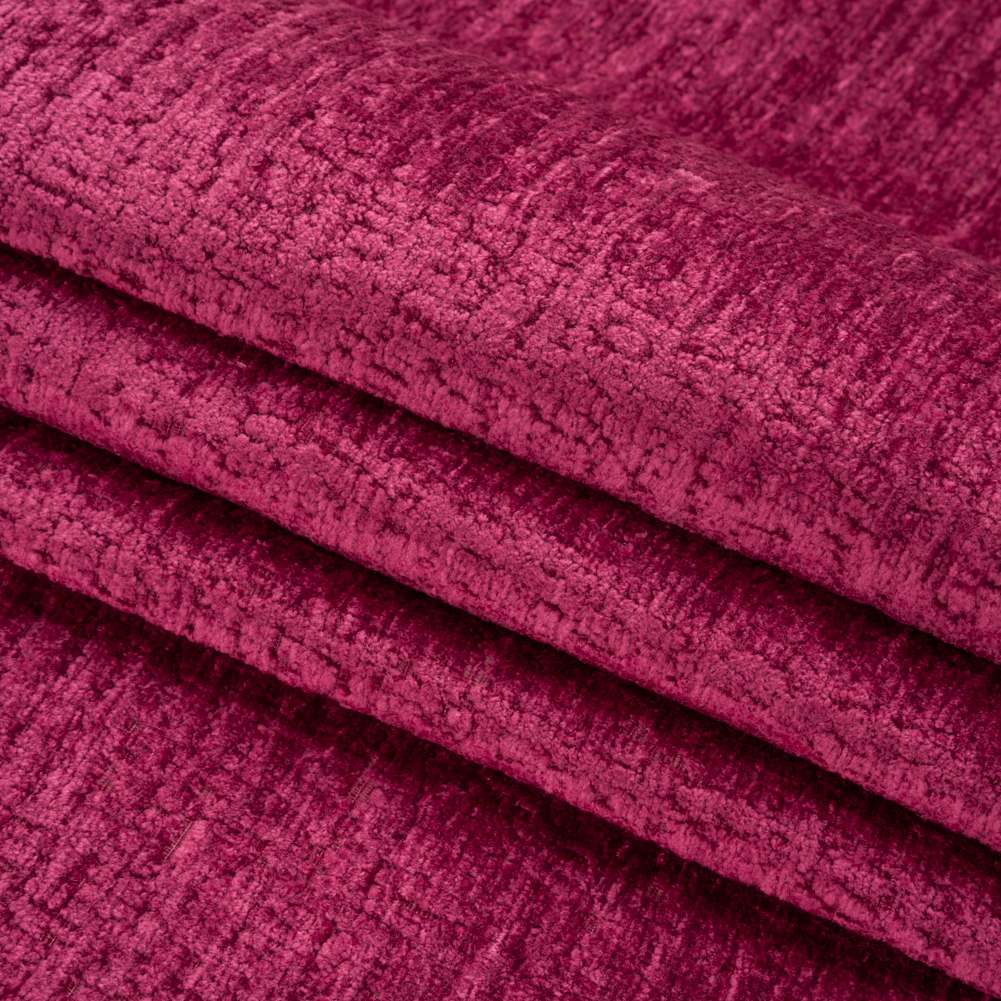 Calling all comfort connoisseurs and stylistic go-getters: this Odie Boysenberry Textured Upholstery Chenille is for you. A two-toned appearance, caused by light hitting the velvety fuchsia yarn, is paired with a slubbed look to create a dimensional face that is as soft as it is luxe. With its semi-structured drape, create cozy sectionals, ottomans, armchairs, and more! The chenille dynasty has reigned over every decade and style, never failing to turn heads with its rich sheen and garner compliments with its plush face. Placing comfort and luxury on the same pedestal, chenille inspires welcoming spaces and timeless furniture. A lining will increase structure and durability if desired.