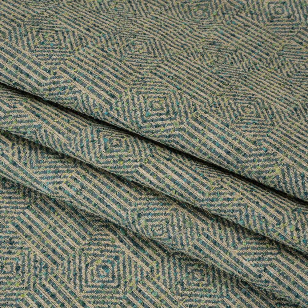 Tweedy Boucle Upholstery Jacquard - Juniper Diamond and Stripe Checks - Damietta Collection