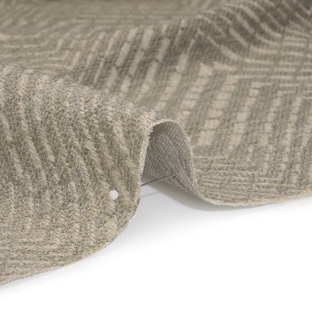 Ripple the surface of your inspiration with this Pebble Chevrons Tweedy Boucle Upholstery Jacquard. With a soft, tactile hand and malleable drape, you’ll want to stay chevr-on it all day!Suggested Projects: Armchairs, Sofas, Ottomans, SectionalsContent: 82% Polyester, 18% CottonStretch: NoneOpacity: Mostly OpaqueBoucle up and get ready for inspiration to strike when you use this upholstery jacquard. In classic jacquard style, the greenish-gray face features a dashed chevron in beige and the back dons the inverse. The iconic texture is a midday-nap-instigator and compliment-creator, igniting conversations regarding its lustrous finish and welcoming cozy gatherings on its soft, tactile face. Heavy and featuring a malleable drape, this fabric is ideal for both large and small upholstery projects, ranging from throw pillows and ottomans to sectionals and chaises.