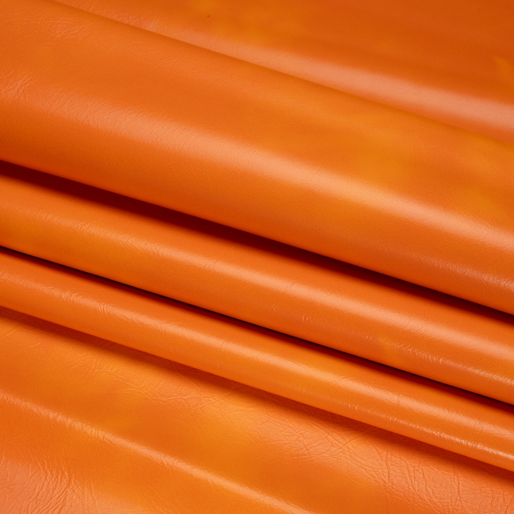 Squeeze bright hues into your home with this Alida Tangerine Faux Upholstery Leather with Brushed Fabric Backing! The orange face looks as though it has aged like fine wine—but has it? Made of phthalate-free PVC, this vegan leather offers an affordable route to worldly interiors without compromising the feel of luxury.Faux leather is as durable as it is timeless; it features an easy-to-clean face, a brushed fabric backing, and a medium-weight, pliable drape. The smooth, soft, and glossy face is textured by wrinkles, dreaming of eclectic armchairs, tufted couches, bar stool covers, and more. Plus, due to its nature, a lining is not required. WARNING: Cancer and Reproductive Harm - www.P65Warnings.ca.gov.