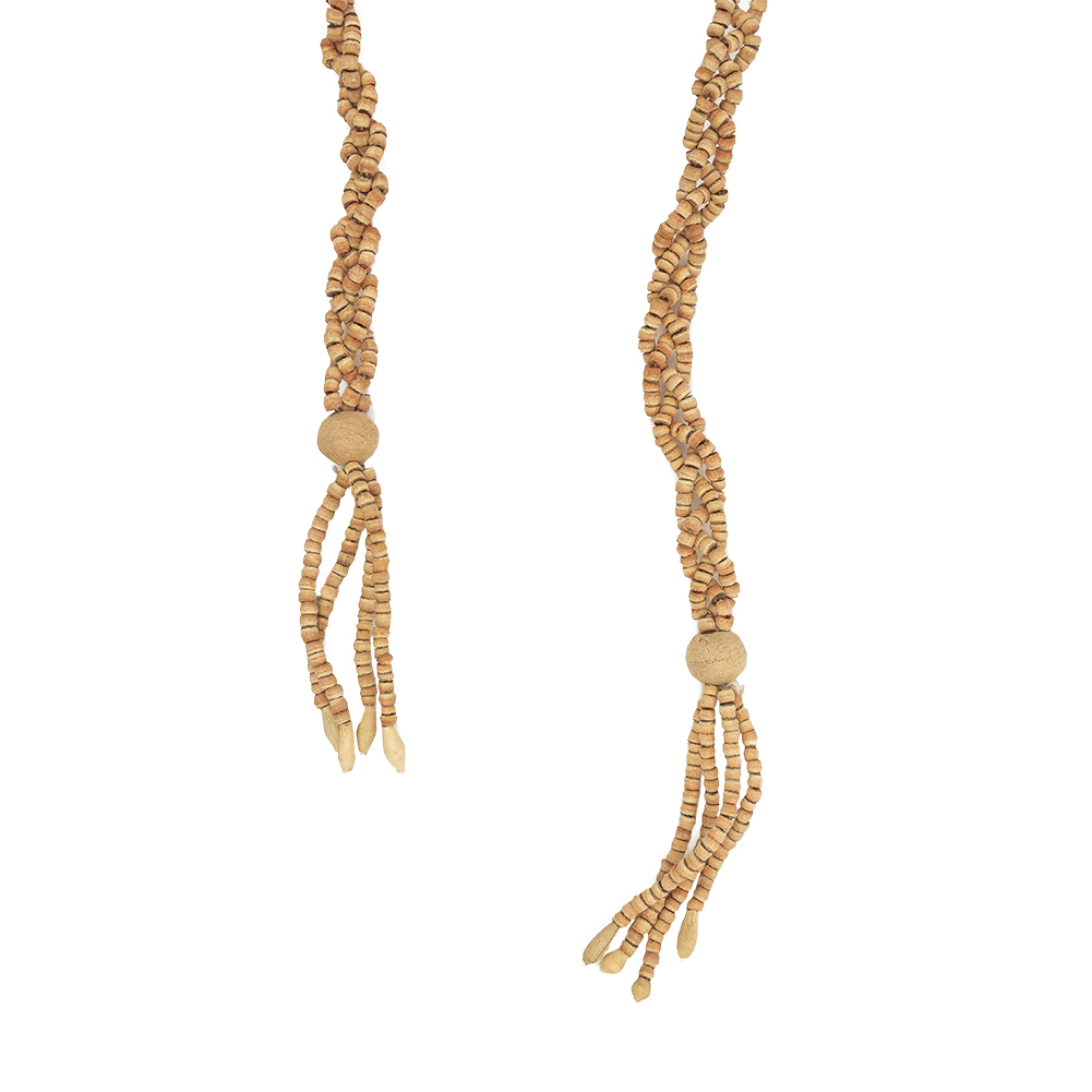 Vintage Natural Wood Beaded Braided Belt with Tassels - 57" x 0.5"