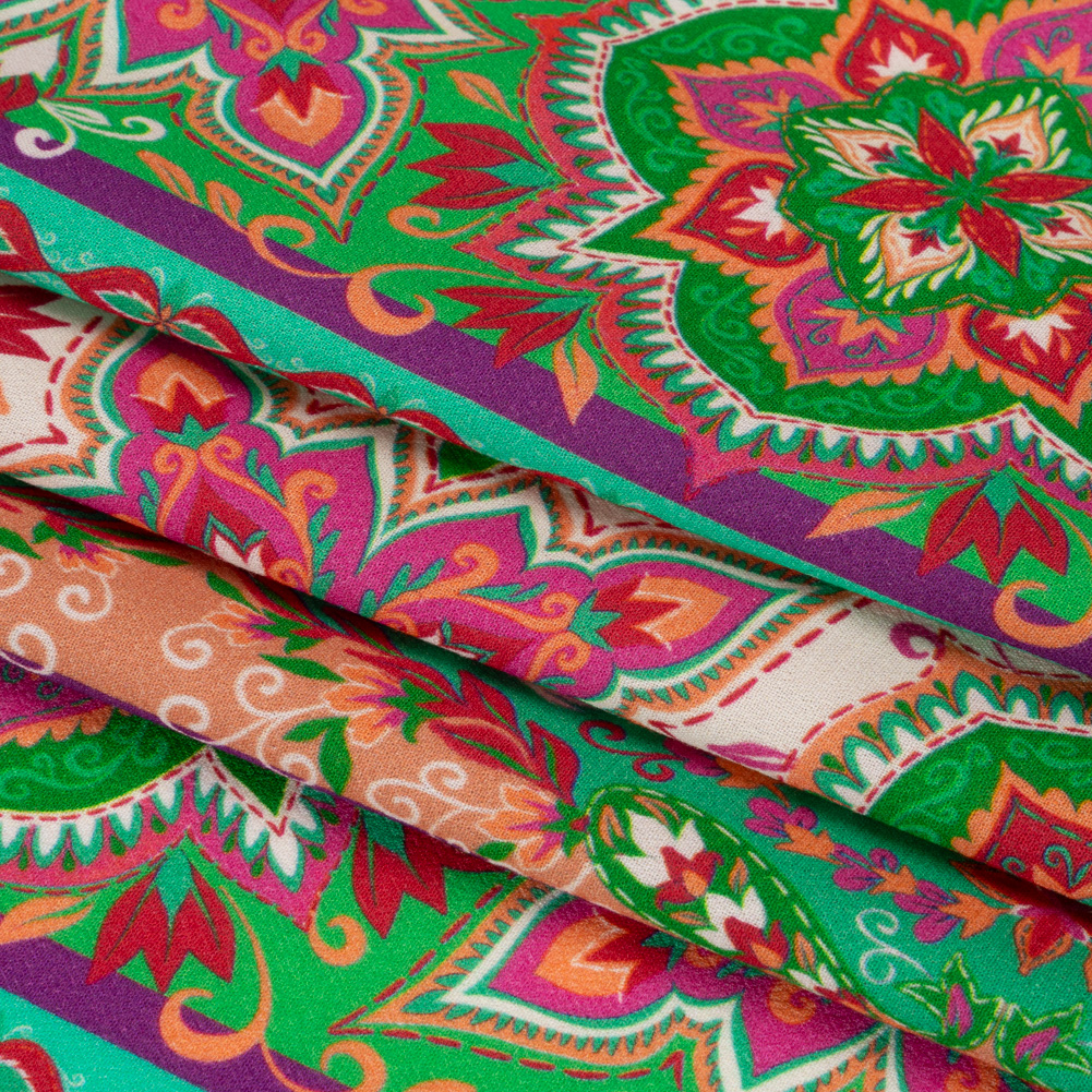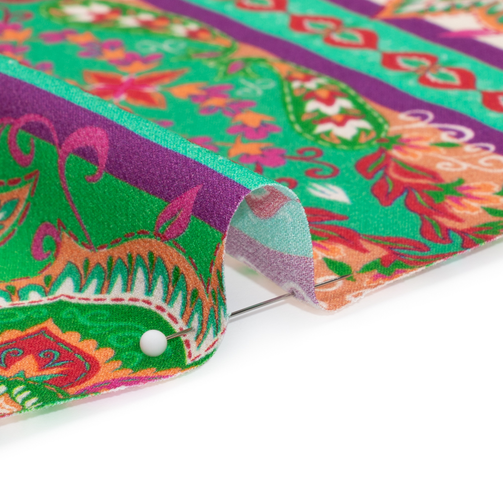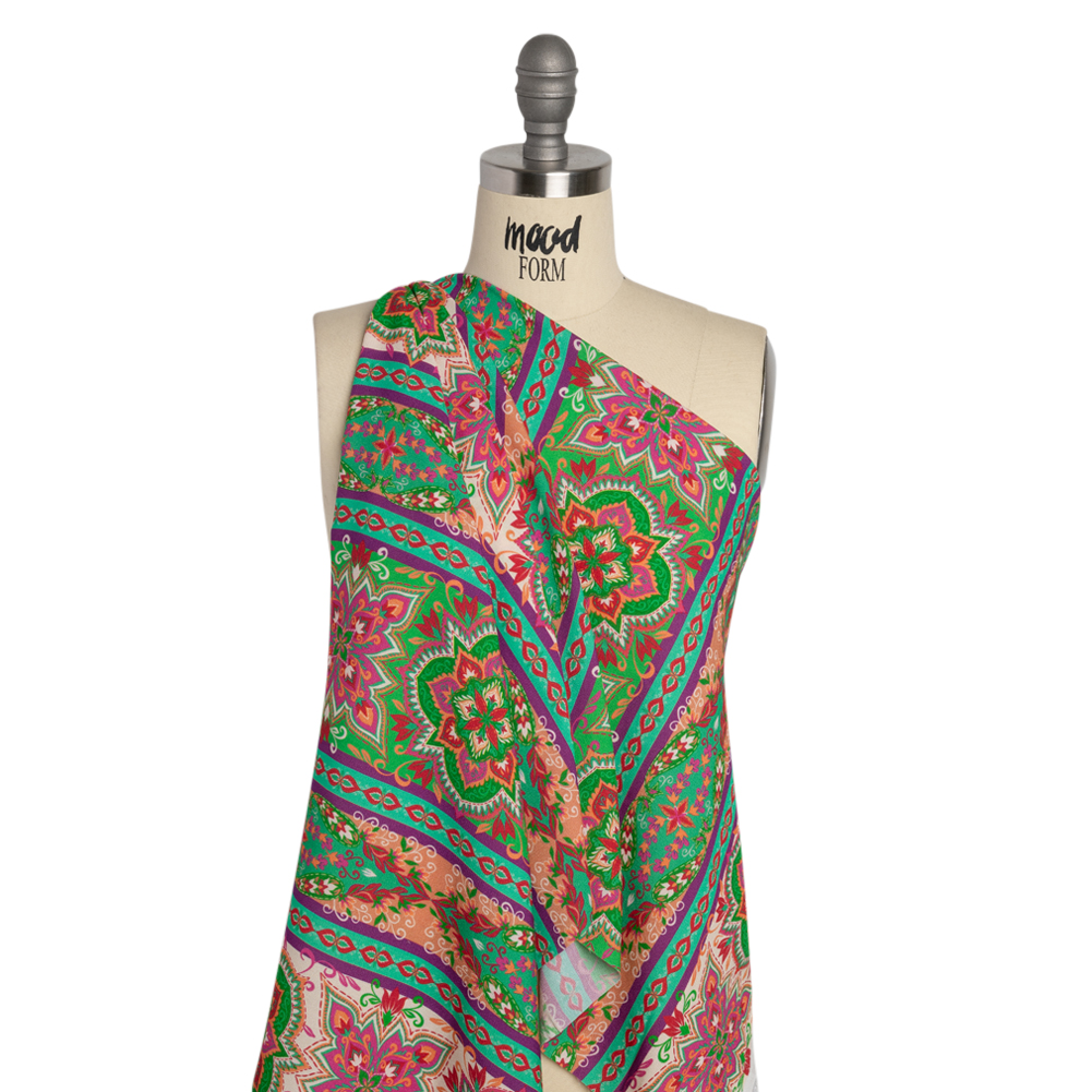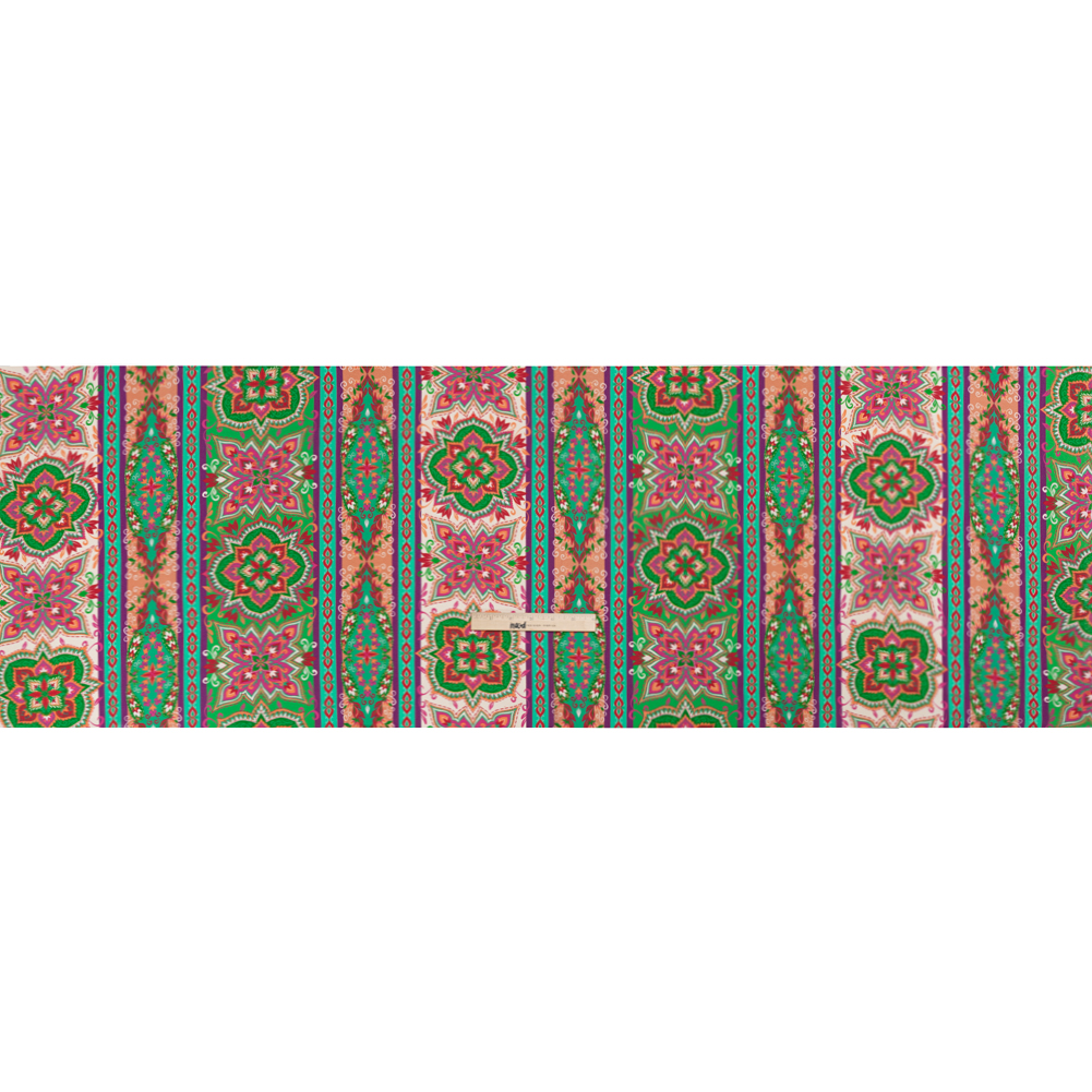 Viscose Crepe Print - Green and Pink Floral Medallion Stripes - Mood Exclusive Happy Hayday
