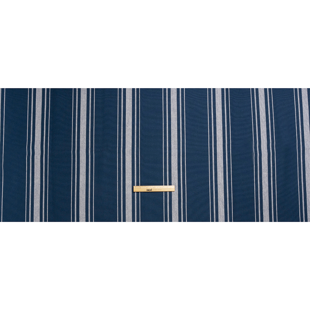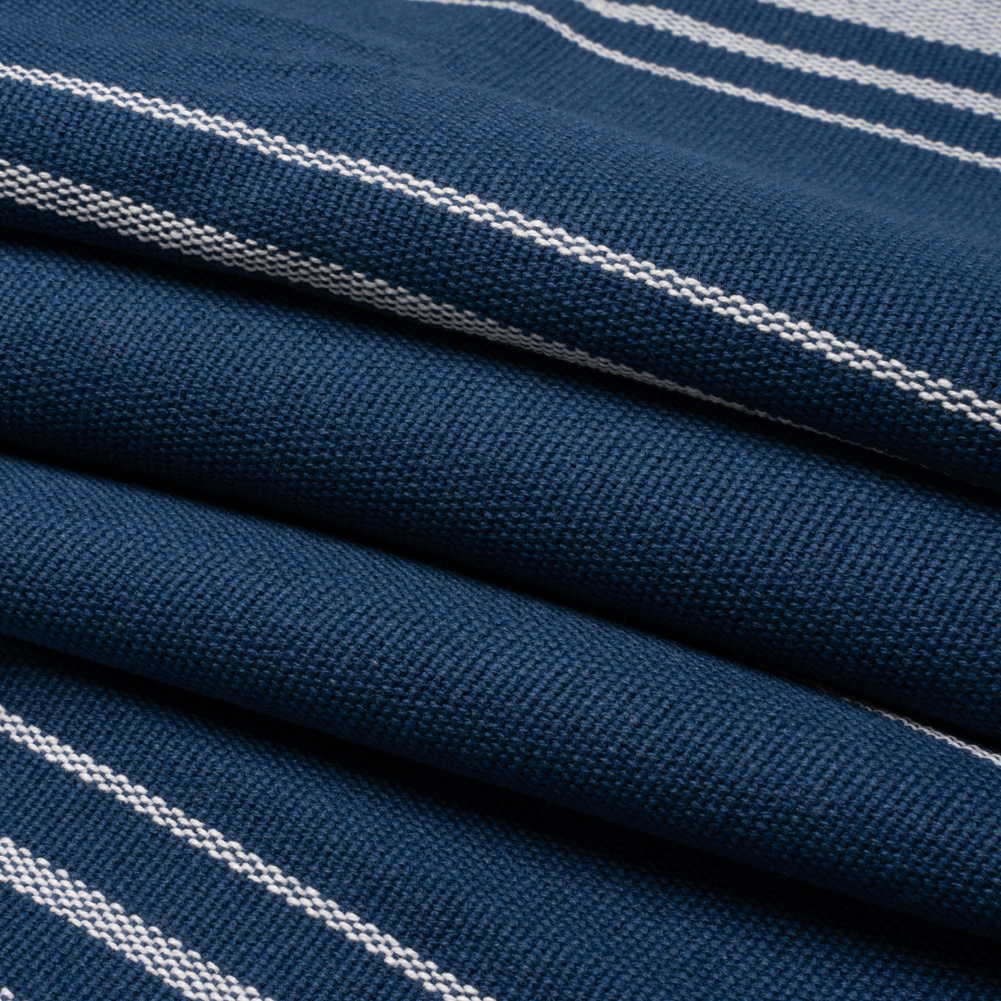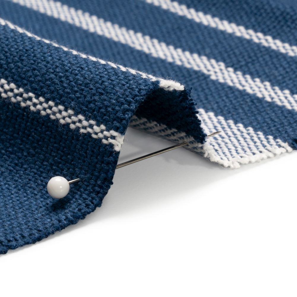 White on Navy Striped Basketweave Cotton Canvas