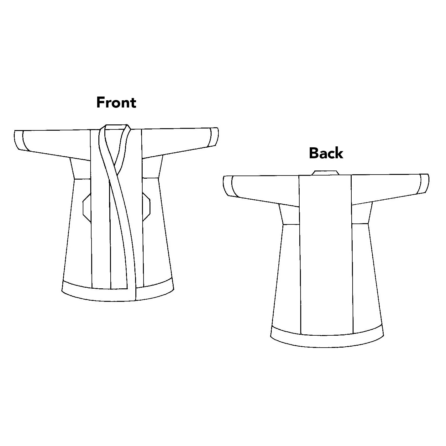 Suggested fabrics: Medium-weight, soft fabrics such as broadcloth, silk, linen, or lightweight wool. The coat’s segmented design makes it easy to work in small pieces of your treasured handwoven or vintage fabrics.