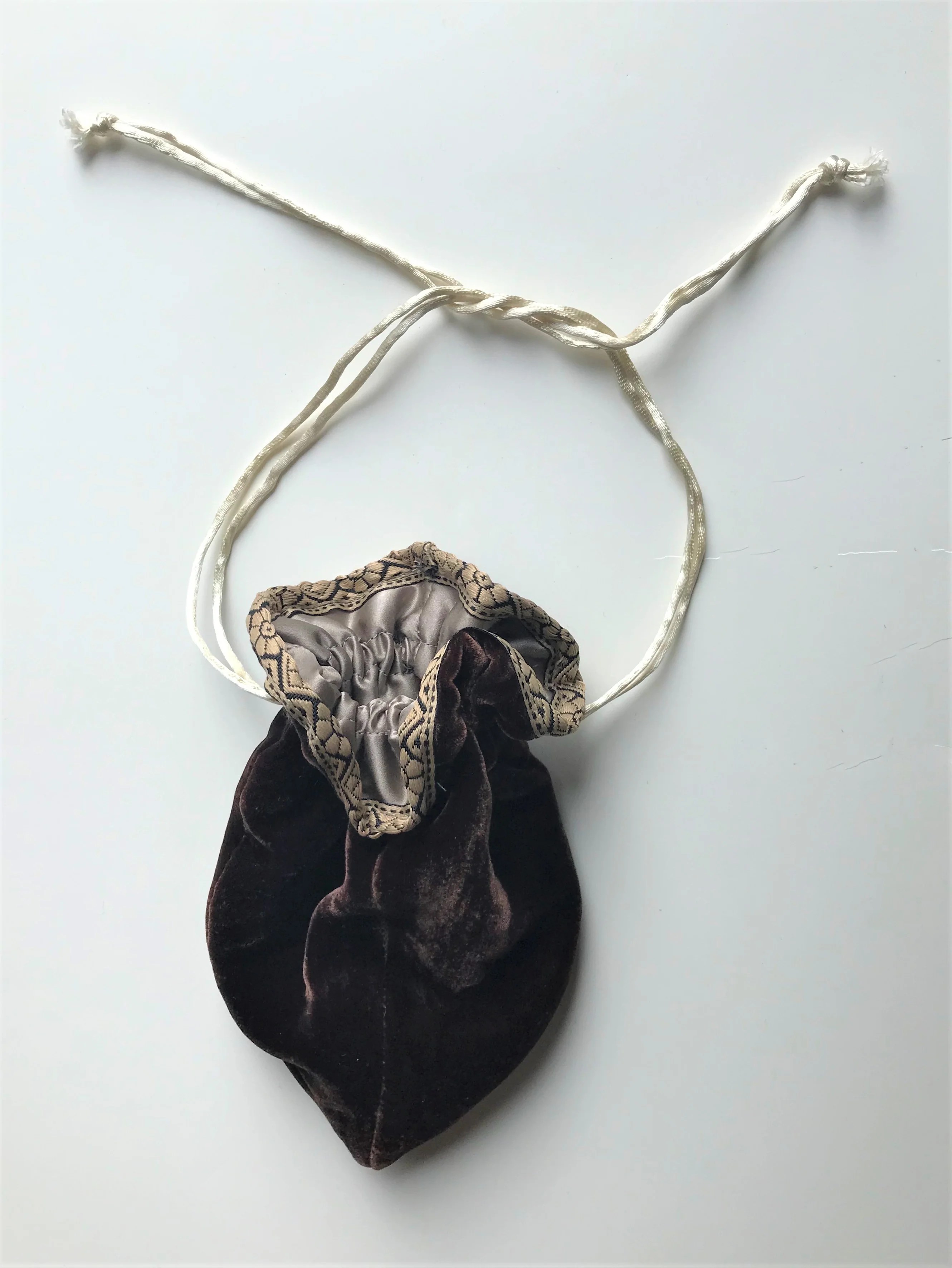 The French Reticle is from the 19th century when women used these bags to hold essentials (because dresses had no pockets) and these became popular when under-dress pockets went out of fashion. Reticules evolved into evening purses - and this still makes a great evening bag.Â