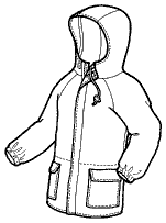 This fully lined jacket pattern (with an optional insulation layer) is perfect for making a warm and weather-proof layer for children.  It features two front pockets with pocket flaps and side handwarmer pockets.  The zipper front has a velcroed zipper guard to keep out the wind.  A hood with a drawstring cord helps keep the head warm.  The length goes below the hip, and the cuffs finish with elastic.