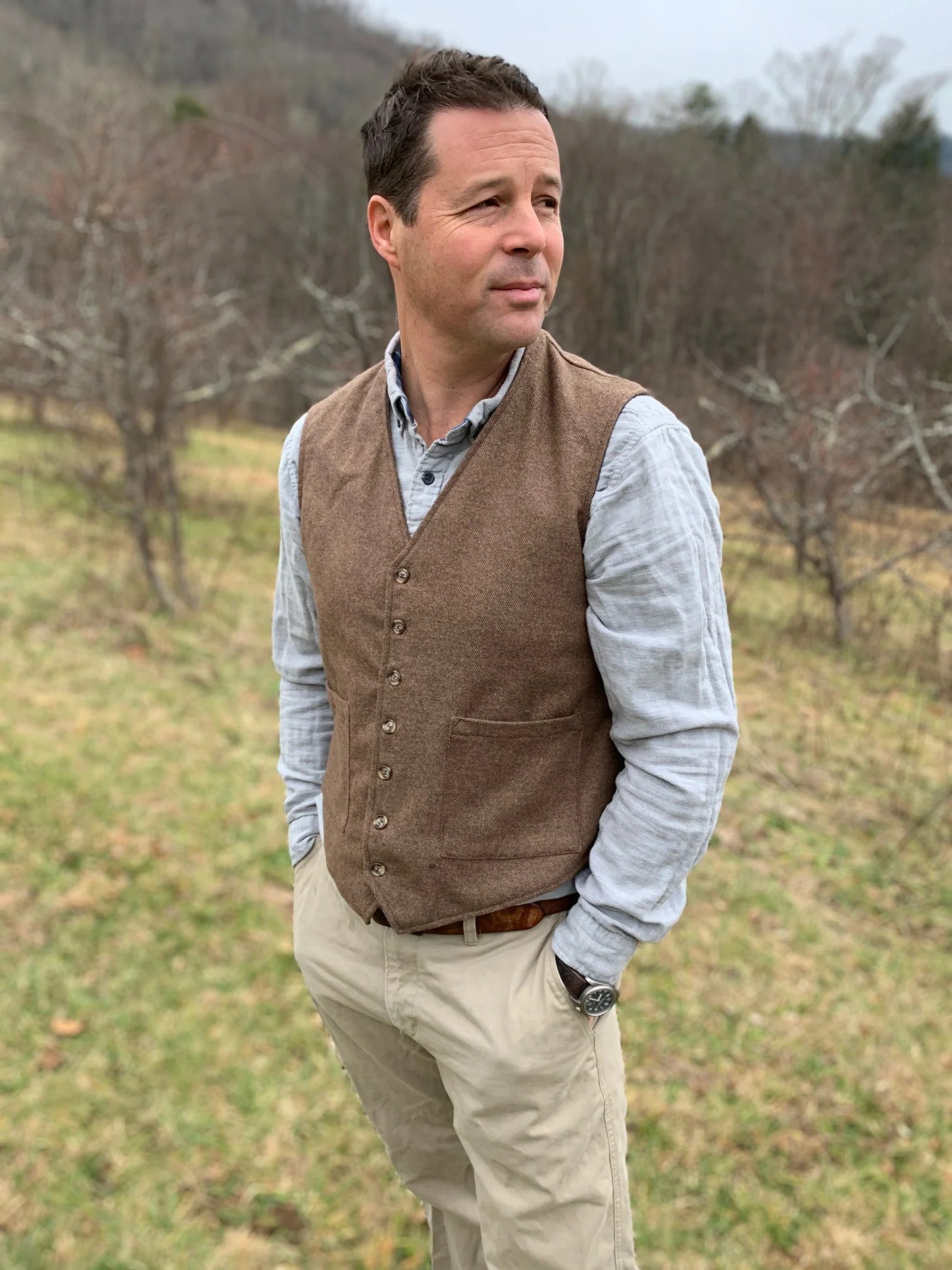 Views A and B are originally men's vests, now sized also for women. View C is a closely fitted women's vest. All three are fully lined; the backs are cut from lining fabric for comfort and to reduce bulk.
