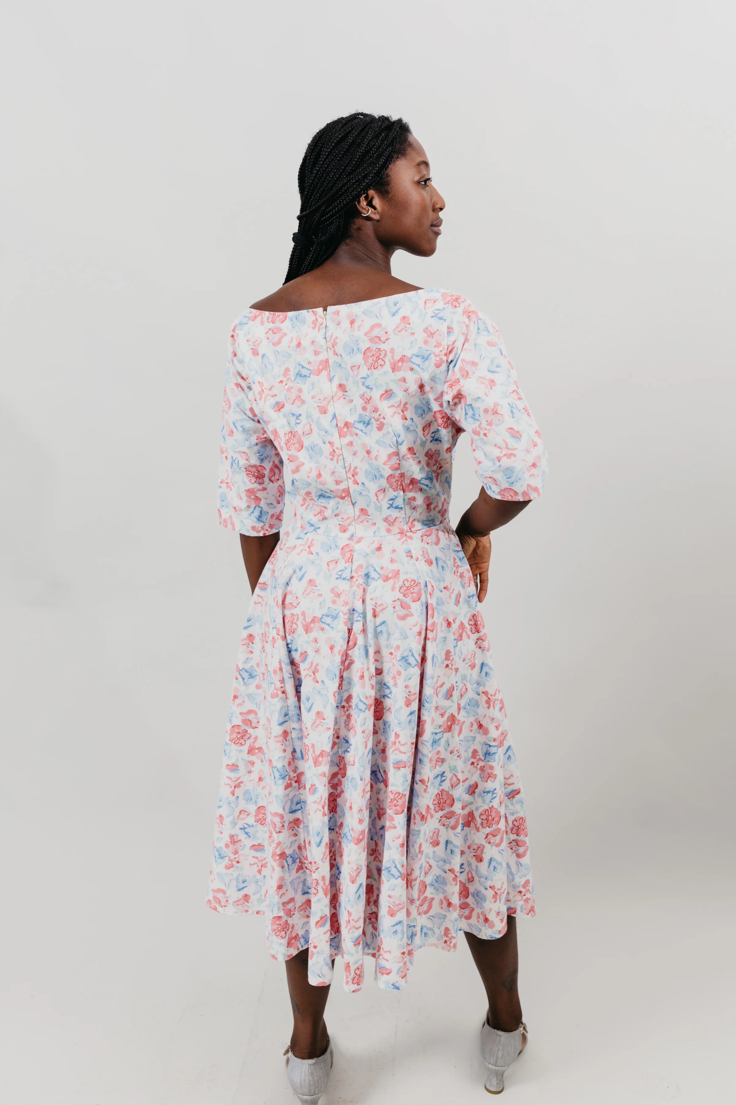 Our 1950s dress pattern creates the typical dress shape so successful is has resurfaced decades later. Aside from teenage fads like poodle skirts and saddle shoes, fashions of the 1950’s were remarkably clean, simple, and flattering. After the fabric-conserving war-time styles, skirts became longer and much fuller, beginning with Dior’s New Look in 1947. American designers were challenging Paris by producing well-made, affordable ready-to-wear collections which responded to women’s needs for femininity and practicality.