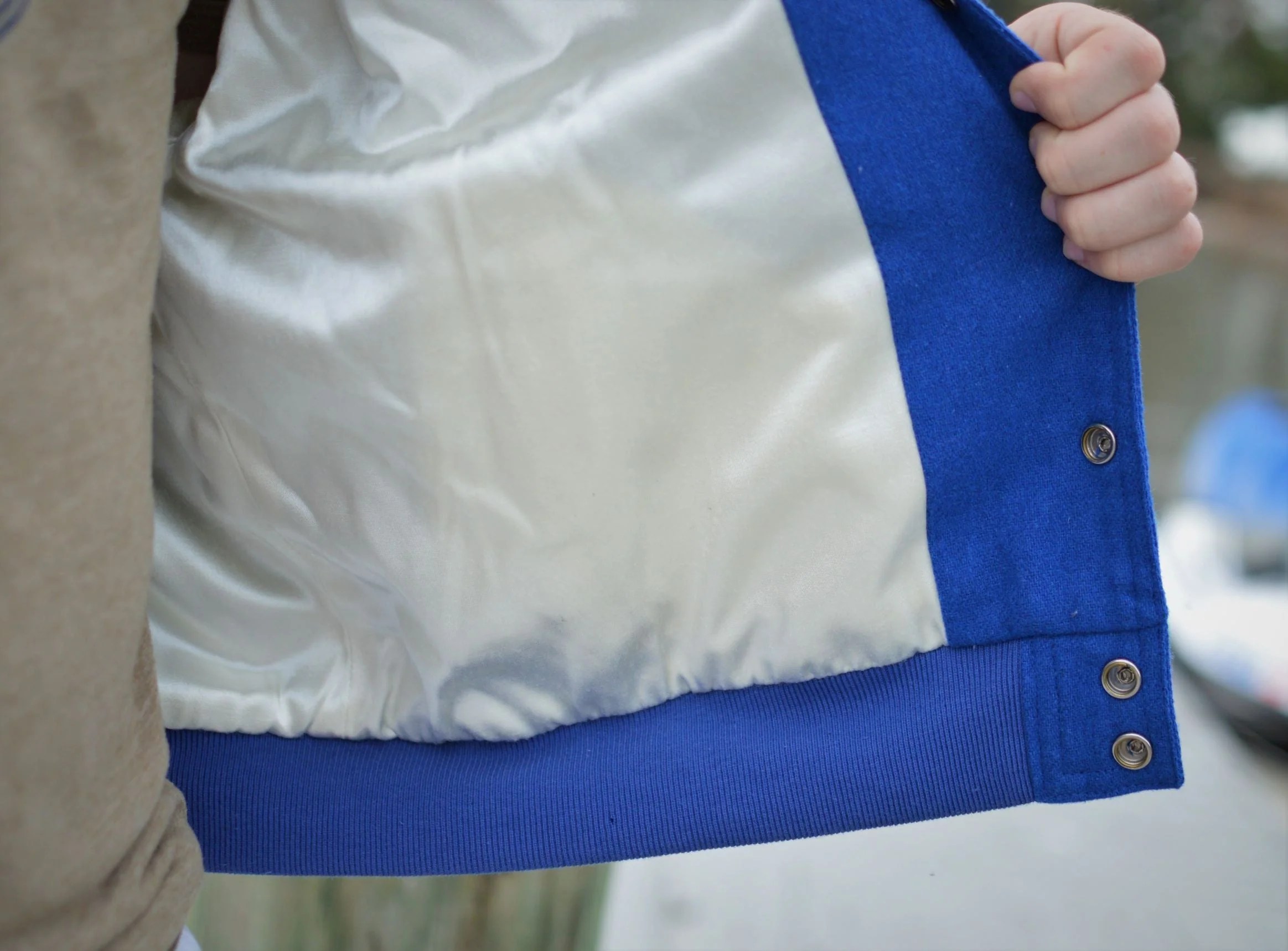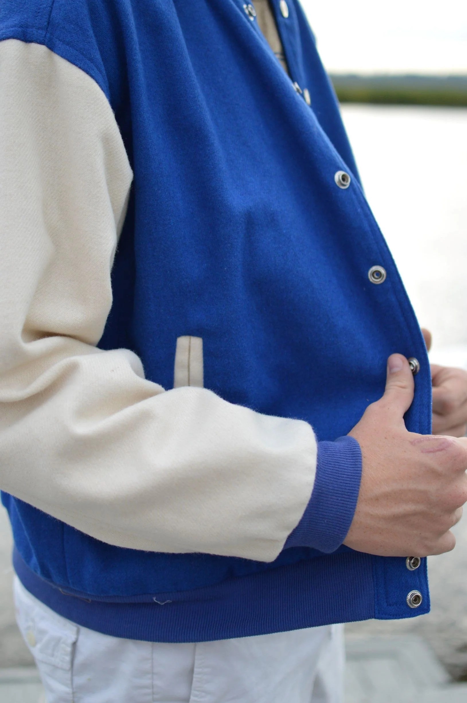 The A-1 Flight Jacket, developed by the Air Force in the 1920’s, was the precursor to the Varsity Jacket. The short, leather blouson jacket had knit wool collar, cuffs, and waistband to keep out the wind and chill in an open cockpit and provided ample freedom of movement. This dashing style eventually found its way to campus as a sport coat and became what we now call the Varsity Jacket.