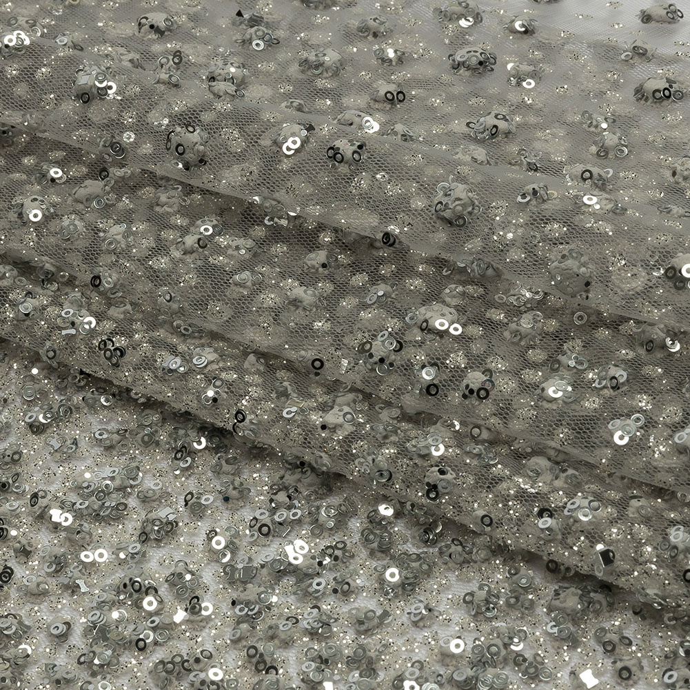 3D Glitter Tulle - Light Gray Puffy Spots Gradient