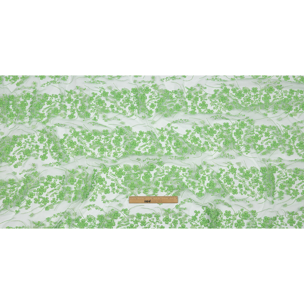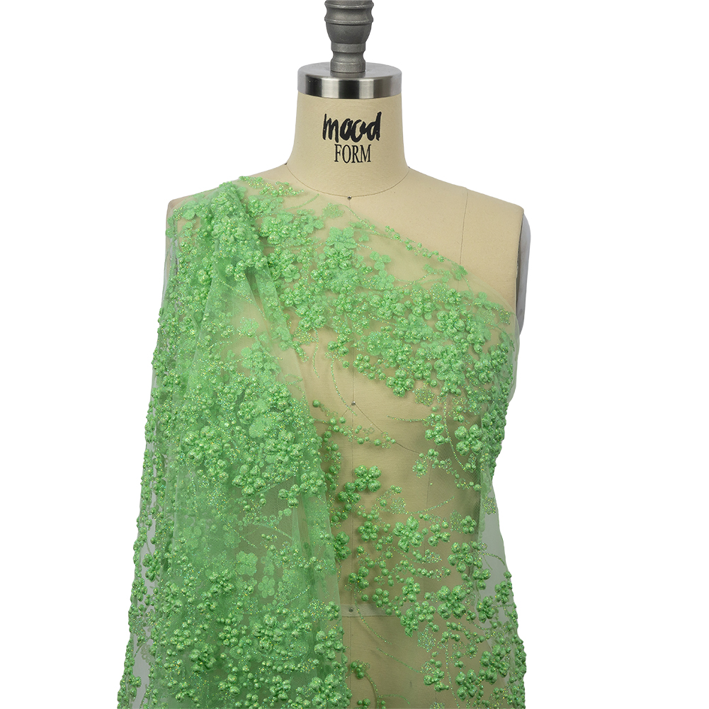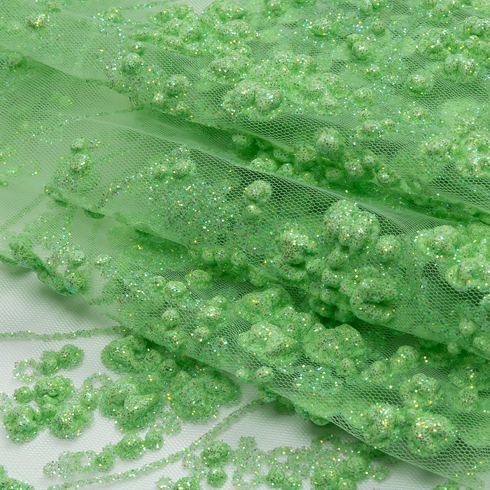 3D Puffy Glitter Tulle – Bright Mint Floral Stripes