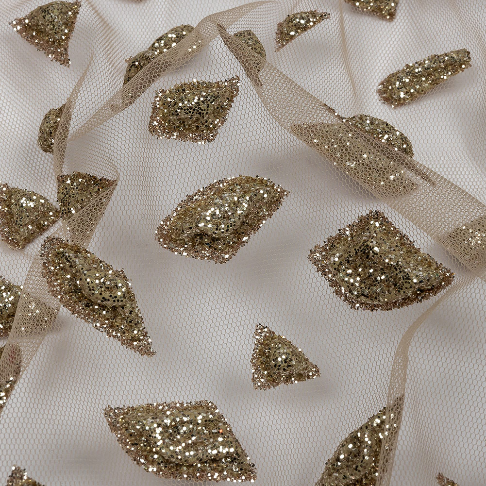 3D Puffy Glitter Tulle - Mink Geometric Gradient