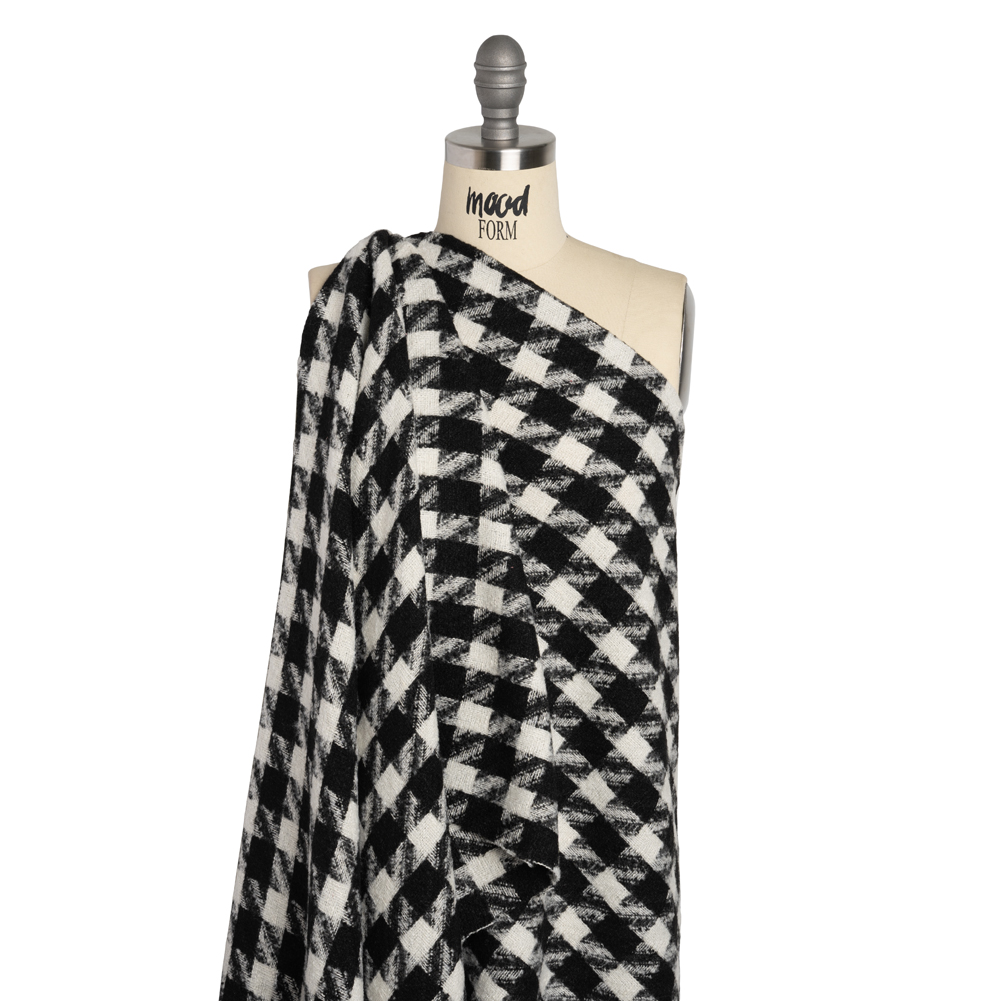 Bundle up and brave the cold in this Black and Cream Houndstooth Acrylic Bouclé Tweed, featuring an ultra-soft hand and supple drape.Suggested Projects: Dresses, Skirts, Jackets, ScarvesContent: AcrylicStretch: NoneOpacity: Slightly TranslucentAs the snow falls around you and the wind tries to blow through you, keep warm wrapped in the embrace of this black and cream bouclé tweed. Bouclé delivers, as always, looped yarn and a soft hand, bringing dimension to your semi-casual and formal wardrobes. It features a supple drape and an ultra-soft hand, perfect for dressing up with Chanel-inspired coats or dressing down with chunky ponchos. A lining will increase structure and warmth if desired.