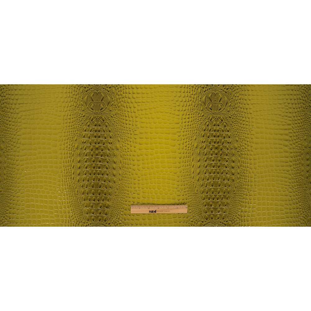 For Sunday brunch with your besties, pair your favorite avocado toast with this Congaree Avocado Alligator 3D Embossed Vinyl! Three-dimensional elements form an alligator-skin pattern, composed of vinyl to ensure humane sourcing and supremely rich color. In a dazzling avocado green shade, this fabric is supremely durable, with a double rub count of 60,000+, plus a mesmerizingly textured face, and stiff, structured drape. Try your hand at designer-quality handbags, take advantage of vinyl's waterproof qualities with raincoats and jackets, or even consider upholstery and other home decor projects. Entirely opaque and with a fabric backing, a lining is not needed for most projects.Note: This product passed Prop 65 testing, meaning it's not known to contain harmful, carcinogenic chemicals. WARNING: Cancer and Reproductive Harm - www.P65Warnings.ca.gov.