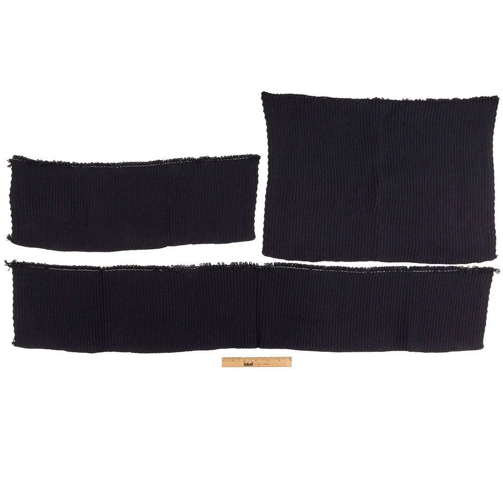 Design chunky, yet funky garments with this Navy Chunky 2x2 Rib Knit Sweater Trim Bundle! Mood has made making sweaters easy with three pre-cut, navy blue rib knit pieces, perfect for finishing cardigans, pullovers, sweatshirts, and more! Soft and squishy with a 75% widthwise stretch and a heavy, full drape, keep yourself bundled up all winter long! This bundle includes pieces with the following measurements:14 inches by 20 inches, for collars7 inches by 42 inches, for hems7 inches by 21 inches, which can be split in half for cuffsThis item includes only the rib knit trim pieces. If you're searching for the matching rib knit fabric sold by the yard, refer to item 427492.Please Note: Each piece has one unfinished edge, which may be prone to unravelling. Handle with care.
